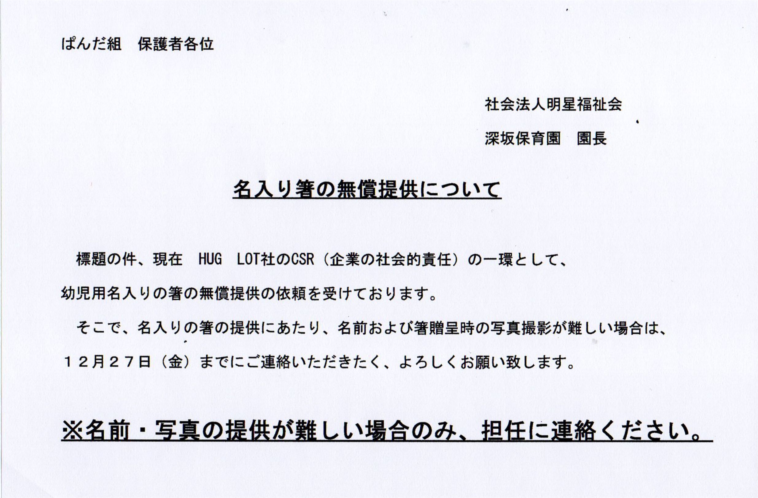 園長先生に保護者の方達へこういった文章を作成して頂き、許可を頂きました。