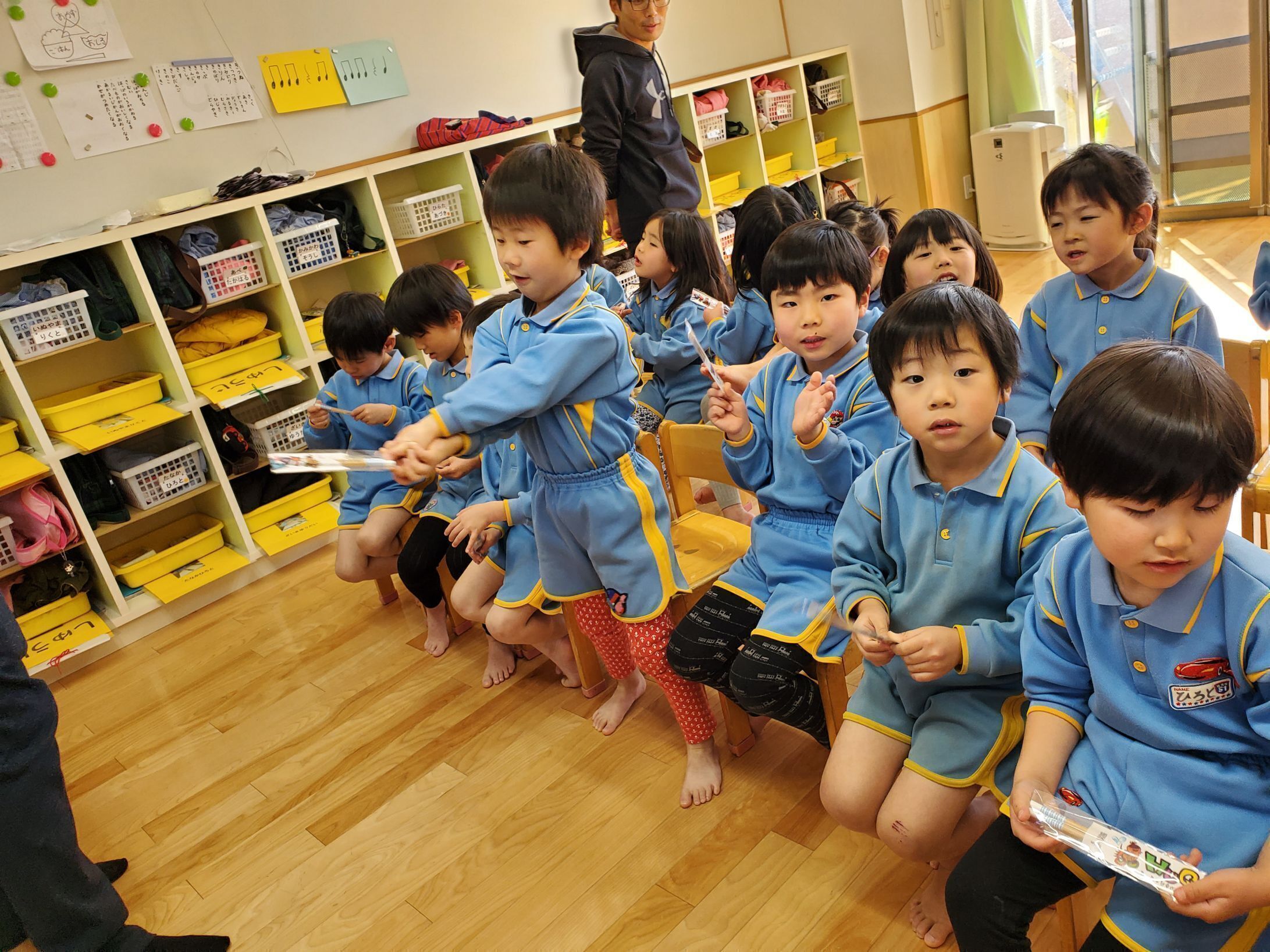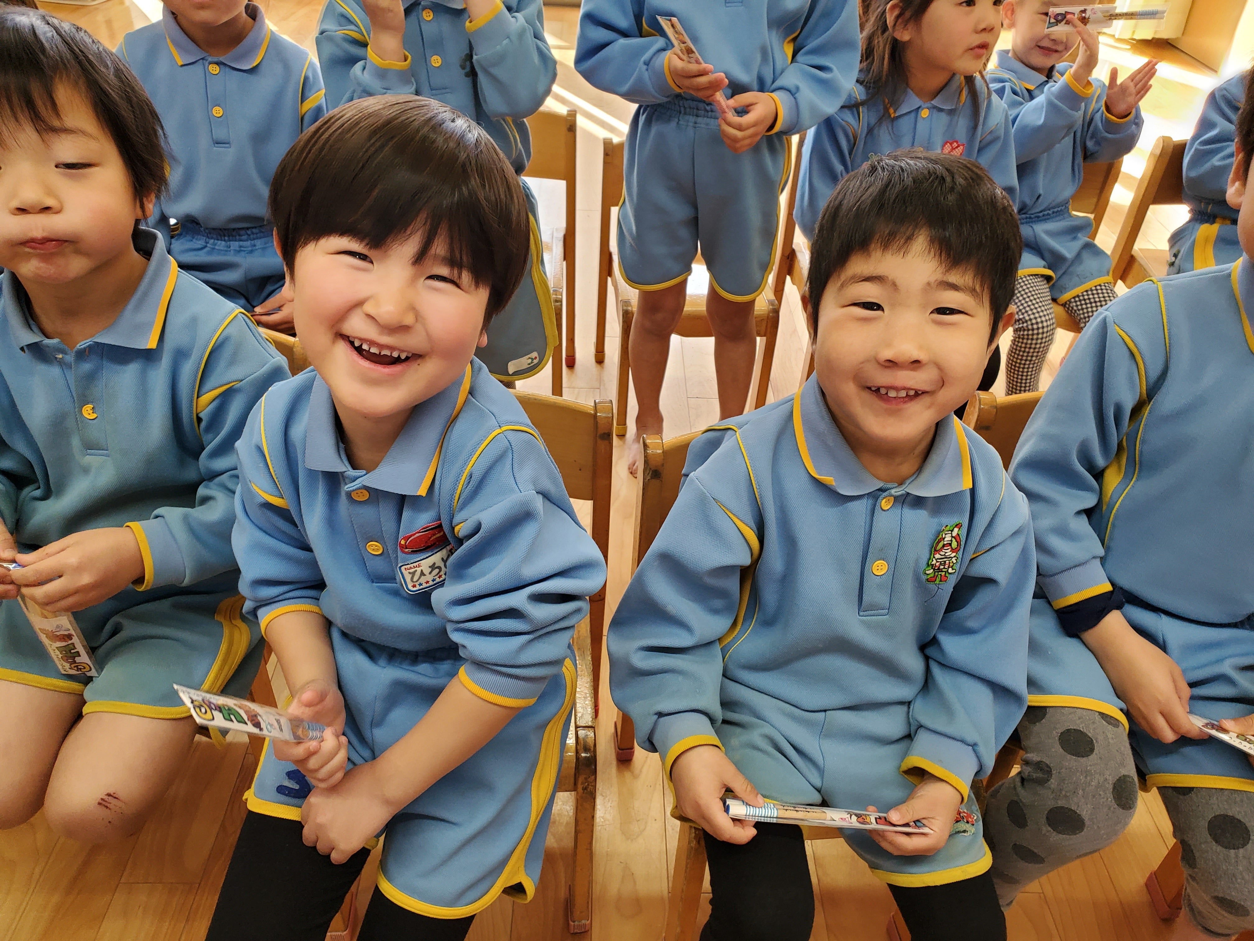 許可がいるところとは思いますが、保育園名、幼稚園名を記載し、集合写真もアップしていければと思います。