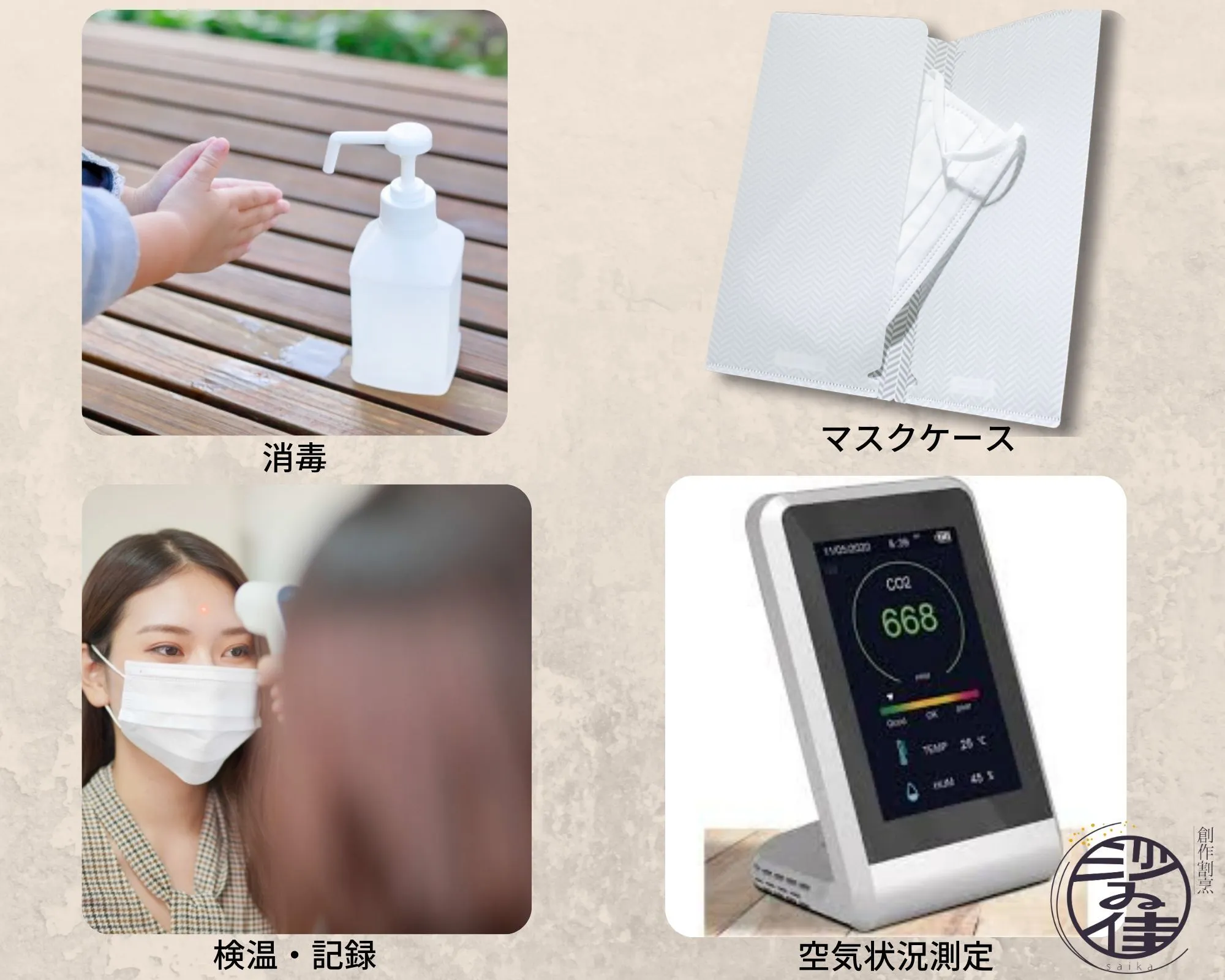 テーブルには、使い捨てのマスク入れを採用しております。