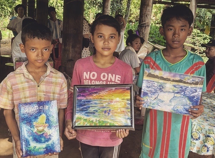 昨年はカンボジアの島へ医療奉仕のボランティアへ行って、そこの小学校にも絵本をプレゼントすることが出来ました。