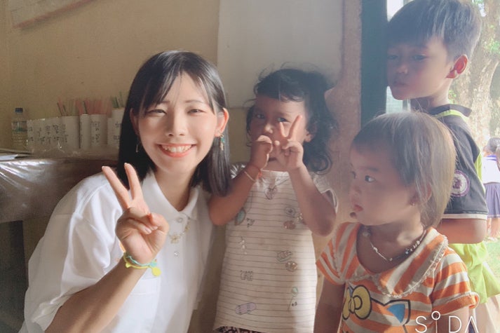 10月に1人でカンボジアへ向かいました。現地の方とアポをとって、みんなで里親に送る写真で 手に持つネームカードを作りました。