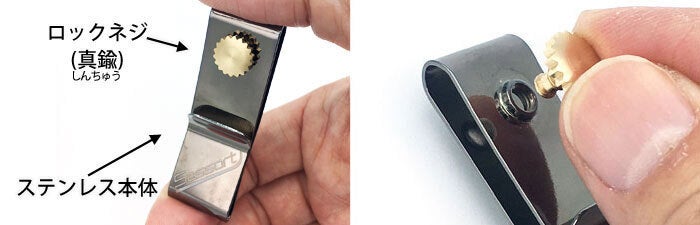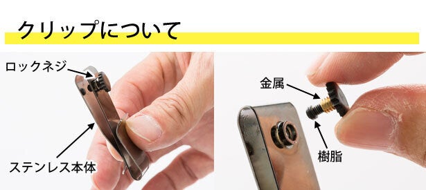 クリップの開発初期モデルが上記写真です。ネジは本体が樹脂製でしたが、