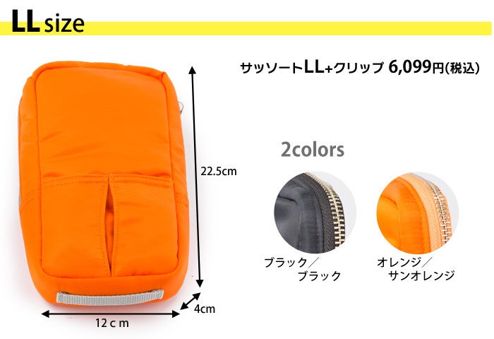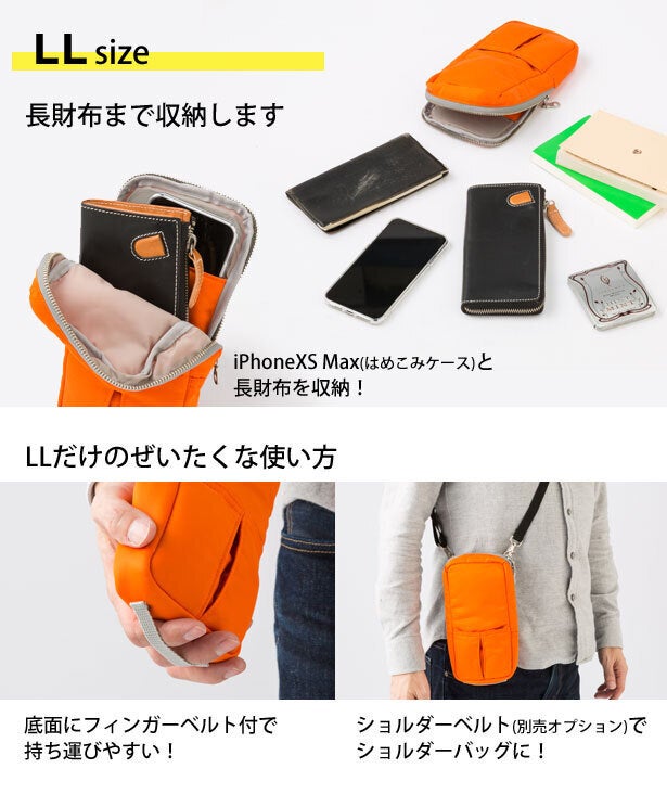 LLサイズ:横120㎜×たて225㎜×マチ40㎜ 重量100g 内ポケット×1 外ポケット×1