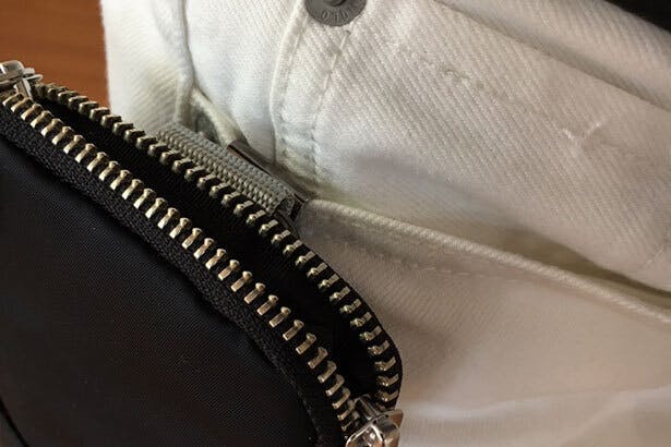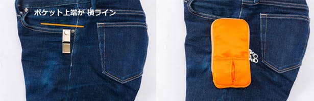 シャツをタックアウトしても裾が重なりにくく、モノの出し入れはいつも快適です。