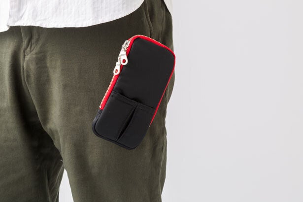 こんな昨今の”スマホ収納問題”を解決するために何か新しいカタチがあるはずと求め続けたら、出会ったのは”ポケット上にポケットを付け足す”というイメージ。