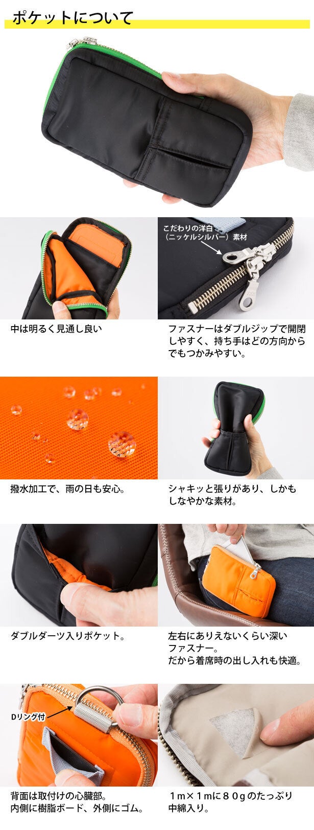 外したポケットは普通のポーチとして自由自在にお使いいただけます。