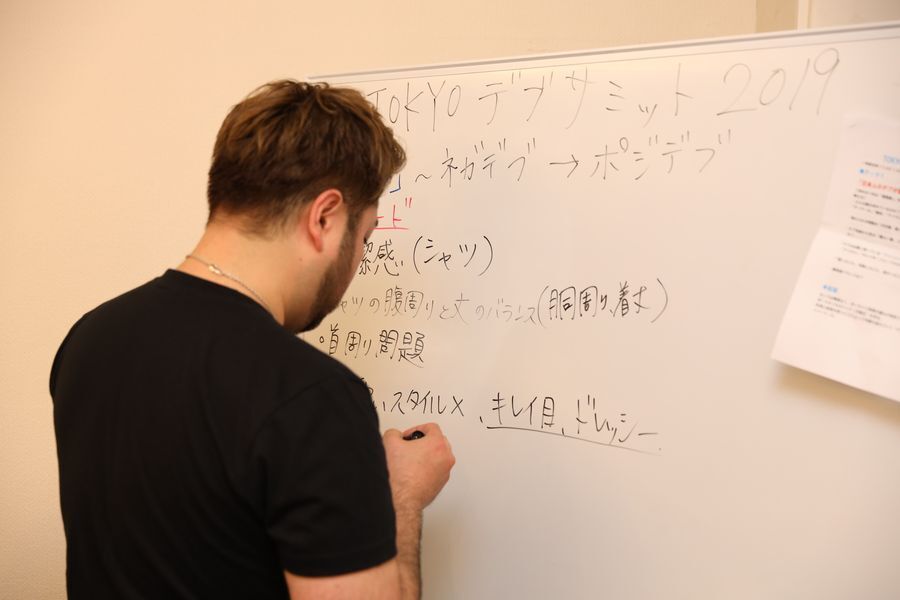 Mr.Babe運営メンバーが直接レナウン本社に伺い、ポッチャリ体型の方たちの声を担当の方たちに伝え「どんなサイズ感」「どんな生地」「どんなデザイン」が欲しいかをヒアリング。