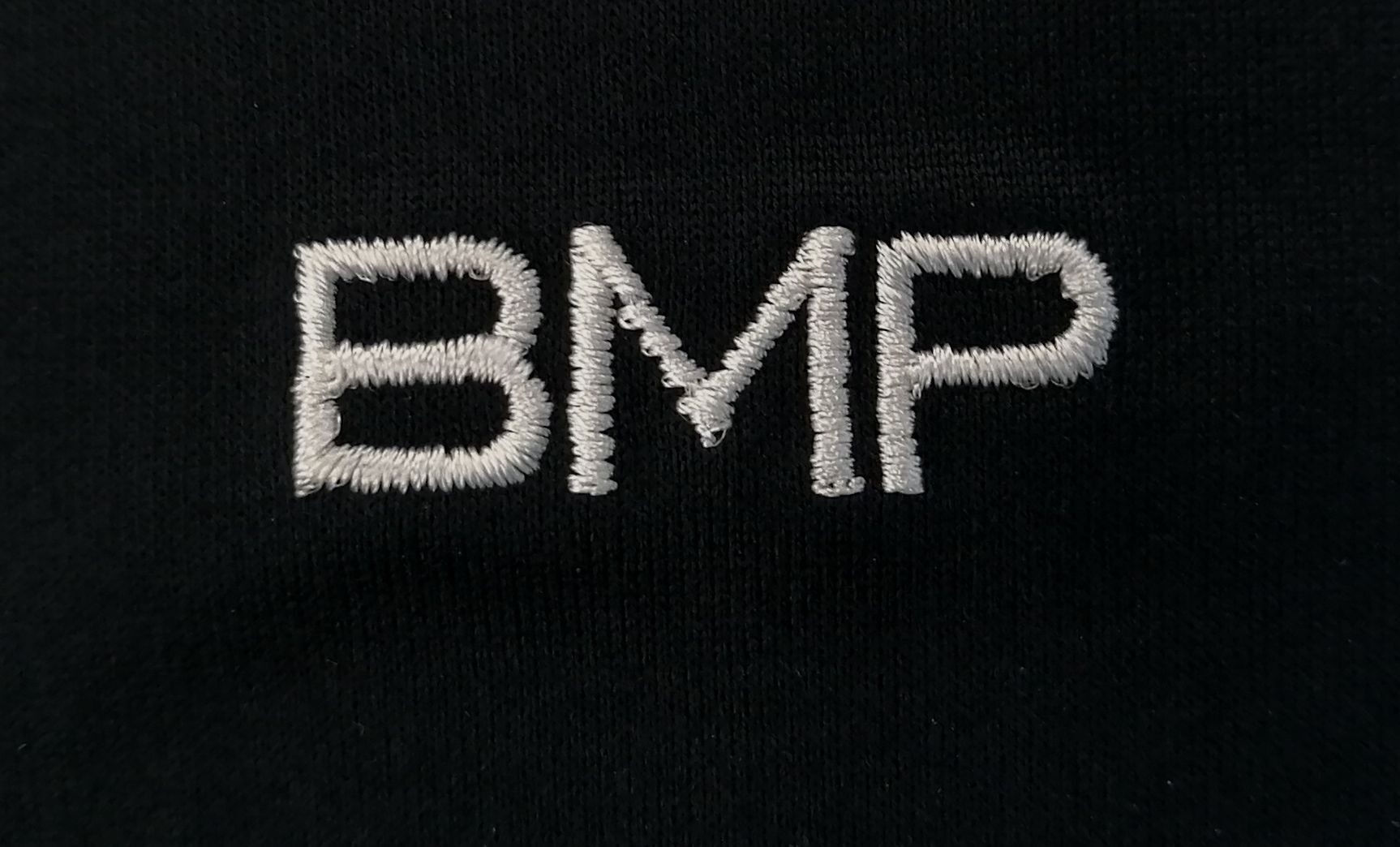 BMP(ビックマンプロジェクト)の刺繍を袖口に付けた、汗ジミがしにくく、着回しやすい無地Tシャツです。