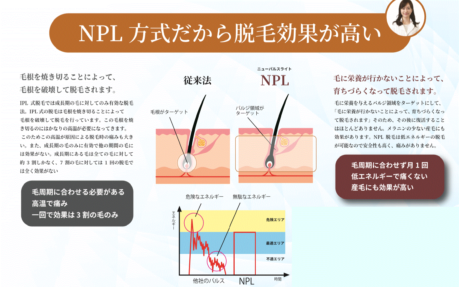 忙しい男性の皆さんに短時間で施術が可能。痛みをほぼ感じることがない脱毛をご提供します。