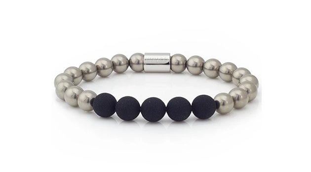 ソリッドチタンビーズとステンレススチール、そして漆黒のLockstoneを組み合わせた高級感のあるデザイン。強度と軽さから生まれたチタンは、耐久性がありながら目立たない本物志向の一品です。