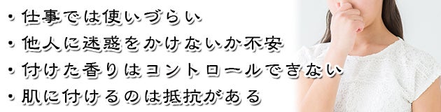 こうした香りを取り入れるのに香水が役に立ちますが、一方で「香水は使いづらい」というイメージやお悩みもあるのではないでしょうか?