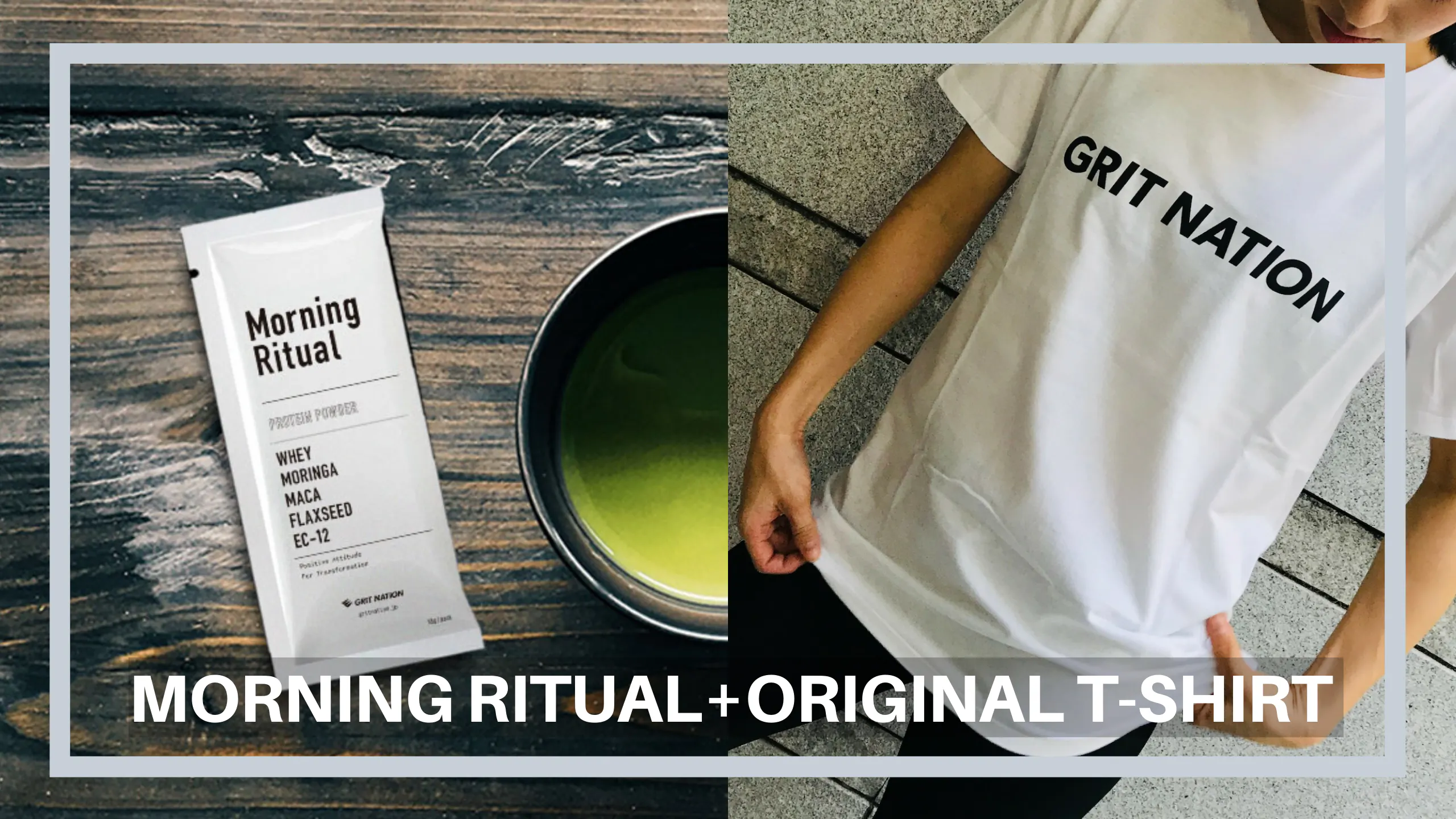 - 【ご遠方のパトロン必見】Tシャツ測定には行けないけどプロジェクトを応援したい!そんな思いをお持ちのパトロン必見。 材料すべてが自然由来のプロテインパウダー「Morning Ritual」とGRIT NATIONプリントTシャツをクラウドファンディング限定の特別価格にてご用意しました。
