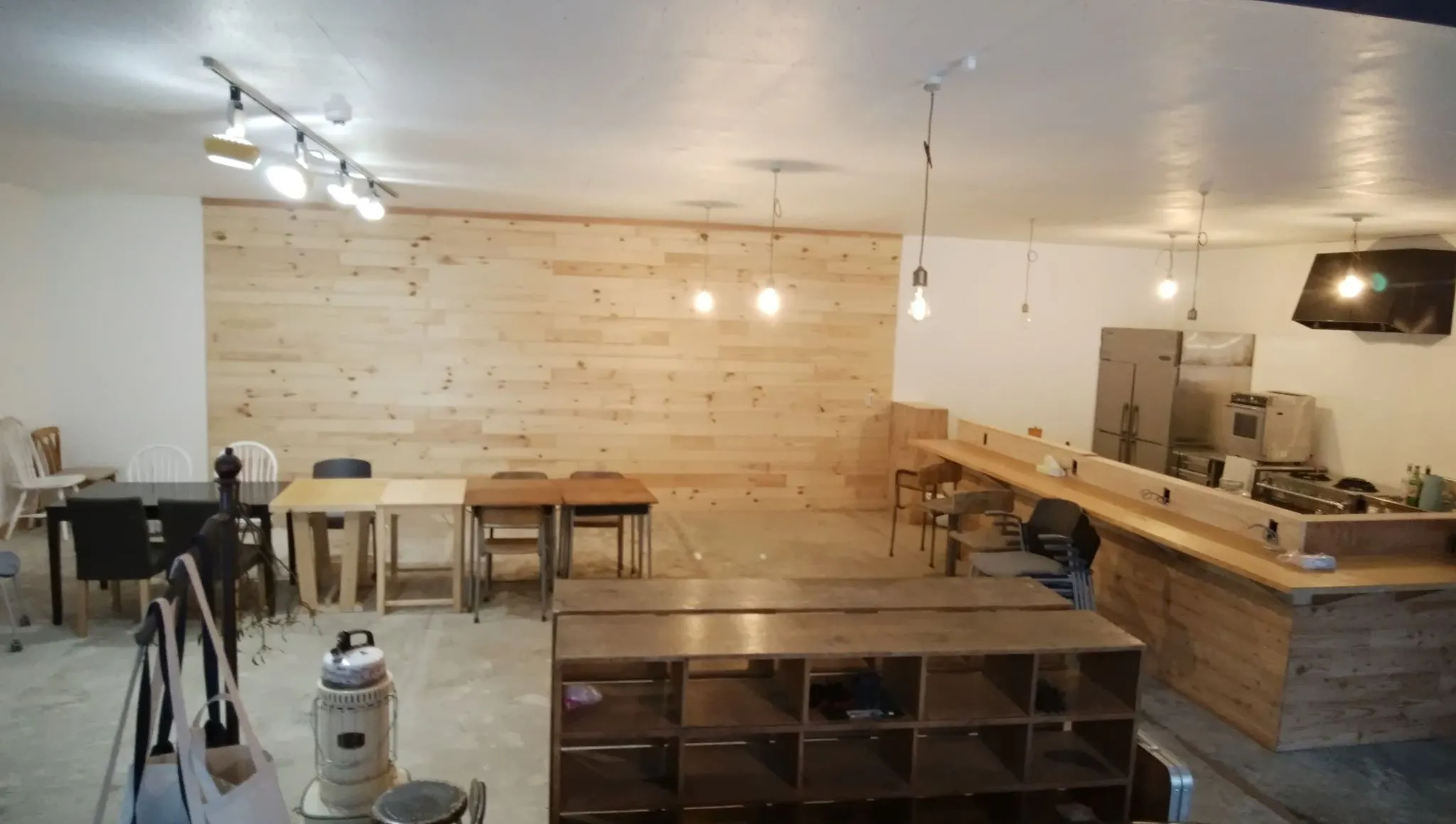 写真(上)は、1月13日現在の状況です。何もなかった空間が徐々に進化し、人が集うイメージが湧いてきました。本当にたくさんの方に支えられてここまできました。ひとつひとつのものが仕上がるたびに、ここはあの人が作ってくれたなと、手伝ってくれた方の顔が浮かび、トイレの壁にまで愛おしさを感じます。