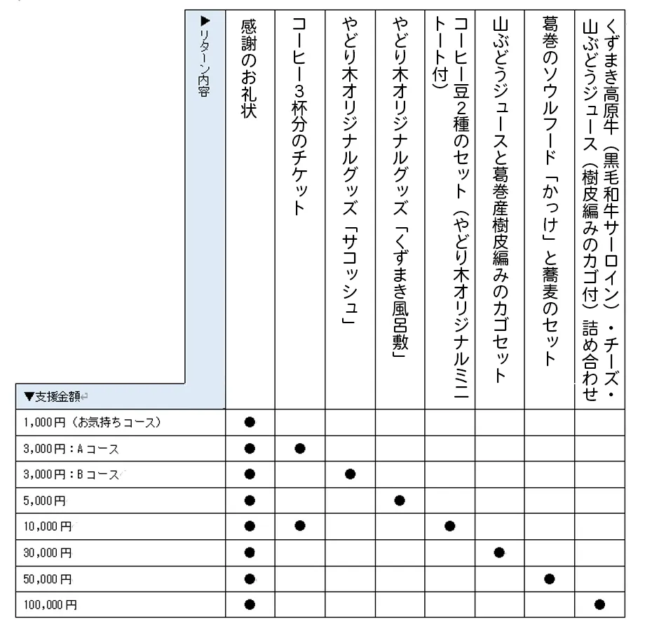 カフェで提供するコーヒー豆や、販売するオリジナルグッズを中心に、リターンをご用意しました。