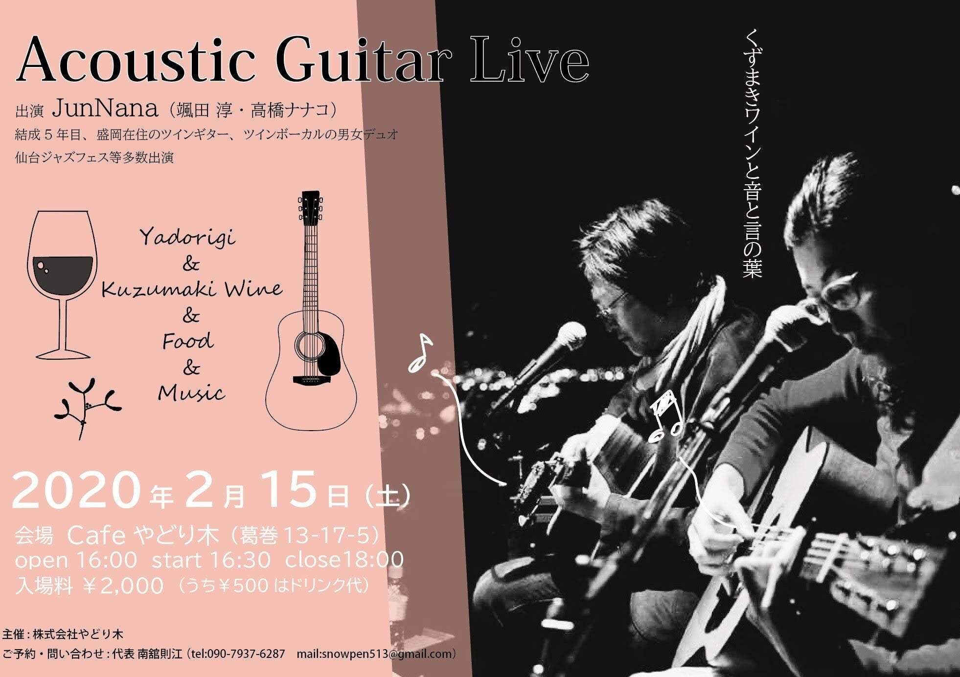 それに先駆けて、前日の2月15日㈯はオープニングイベントとしてAcoustic Guitar Liveの開催を決定♬盛岡より「JunNana」(結成5年、盛岡在住のツインギター、ツインボーカルの男女デュオ、仙台ジャズフェス等多数出演)が演奏してくださることになりました