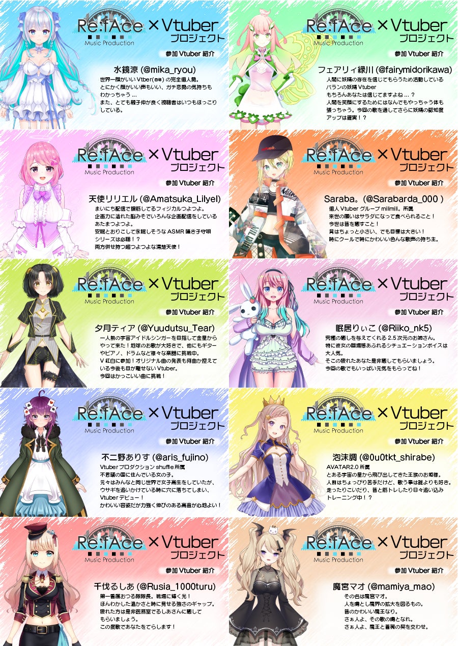 Re:fAce×Vtuberプロジェクト第二弾として、「Vtuberオリジナルソングを詰め込んだアルバム」を制作するプロジェクトです。