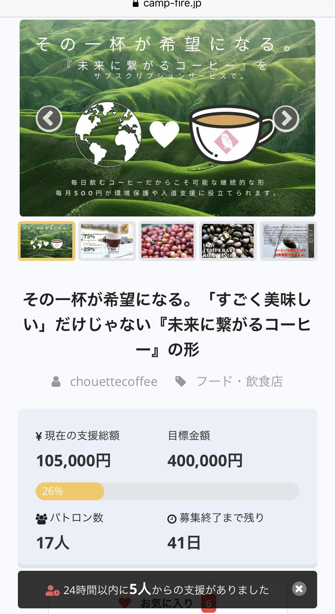 皆様の応援・ご支援のおかげで、残り41日で目標の25%を超えました。