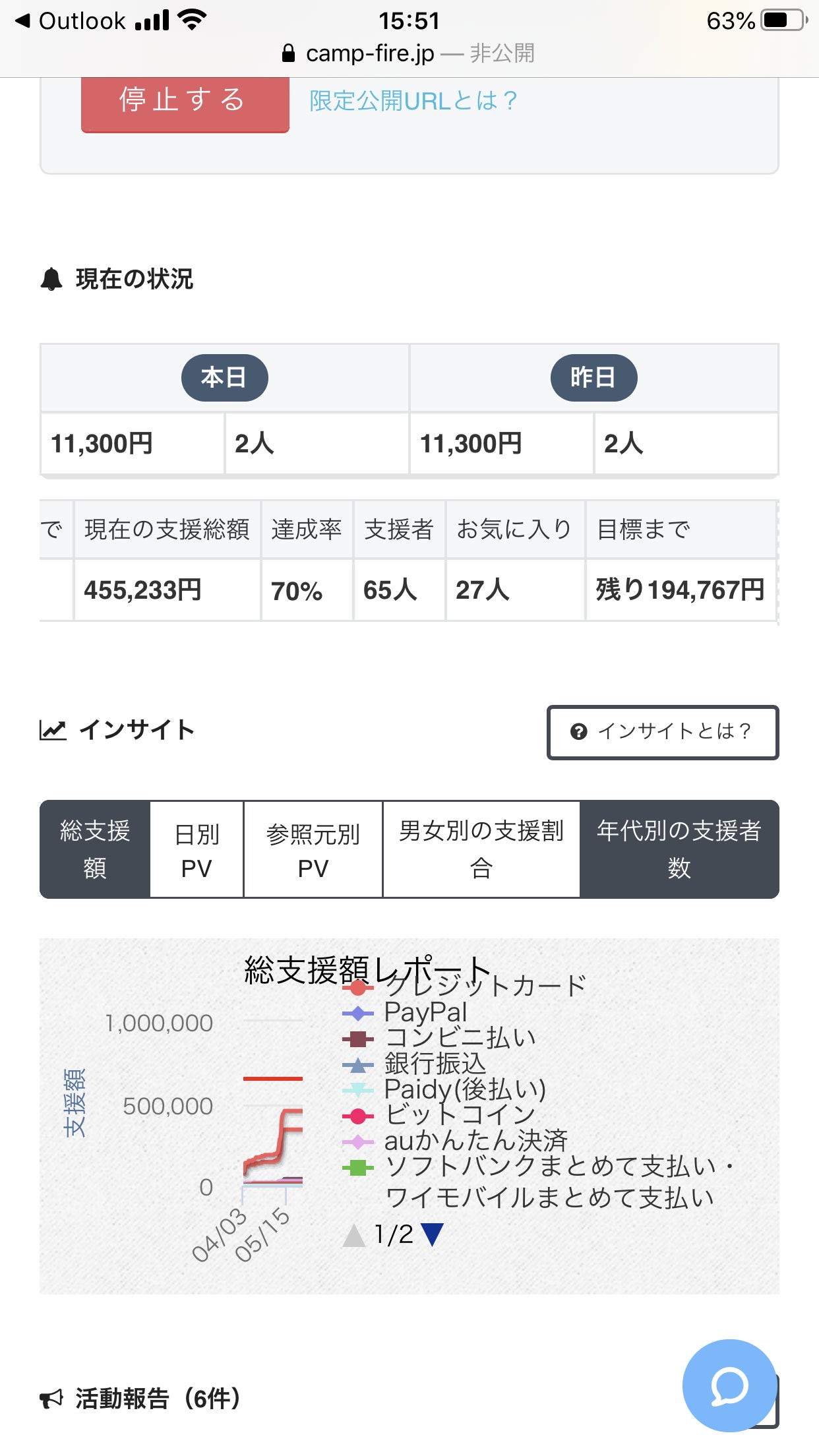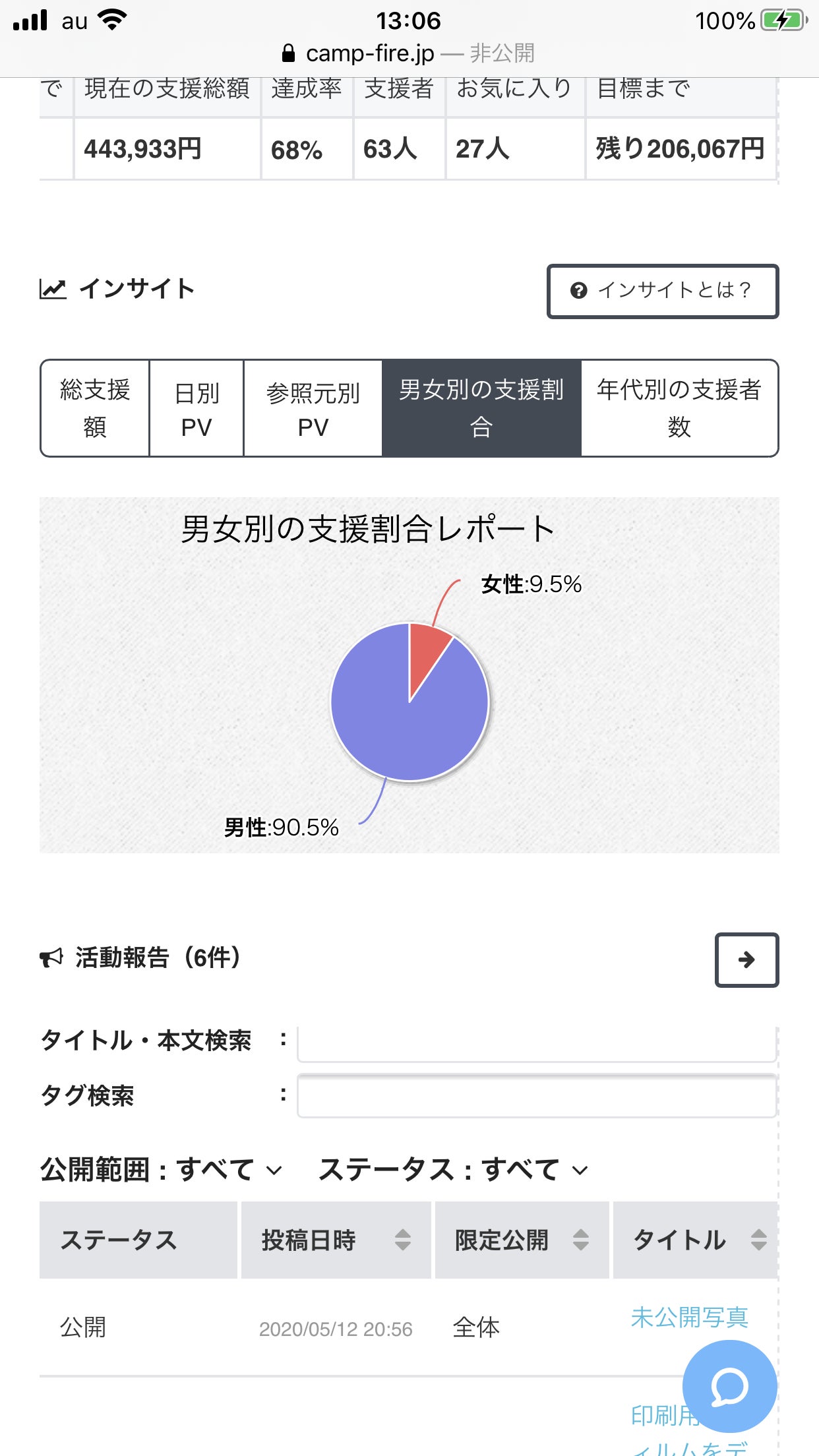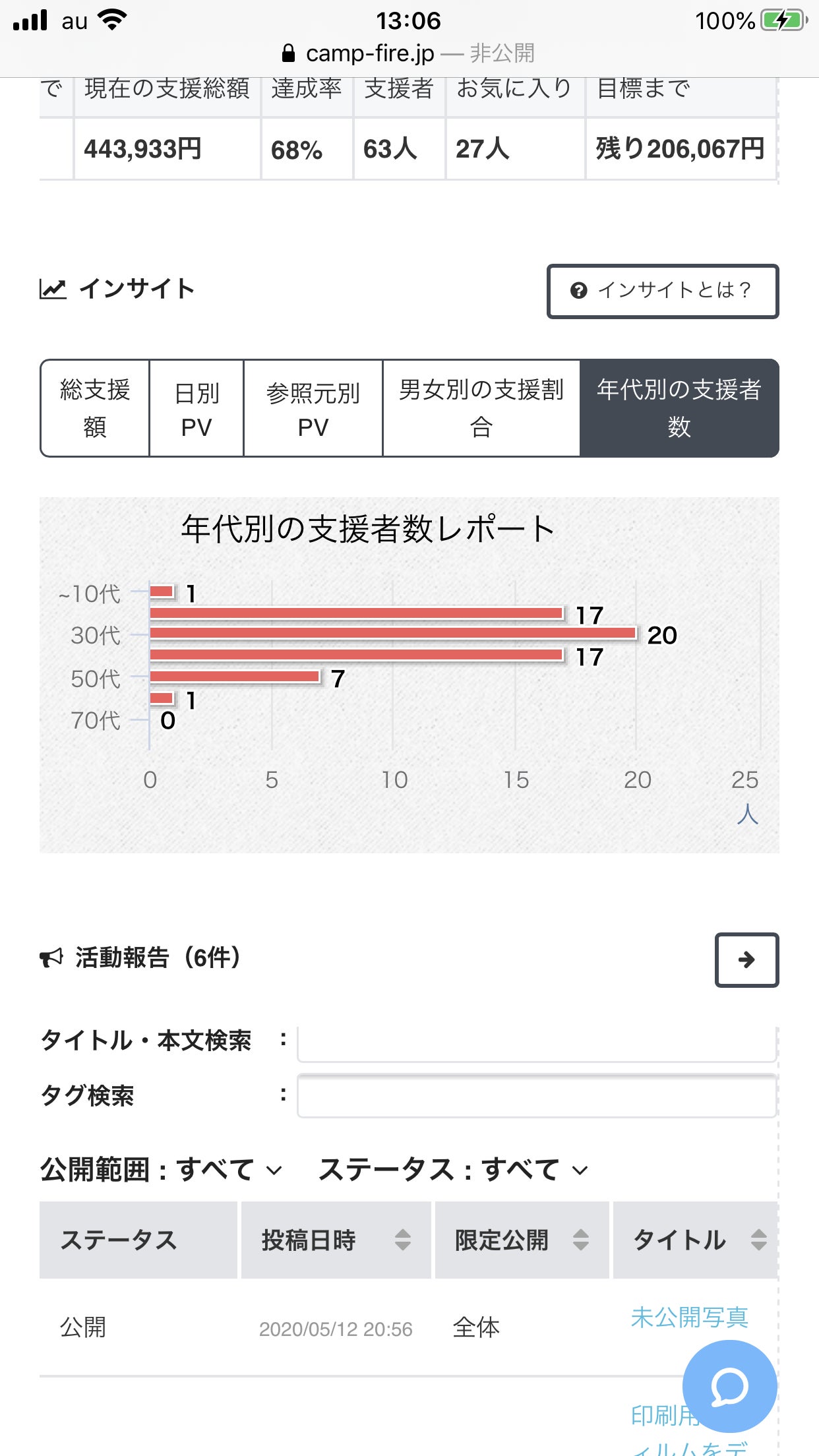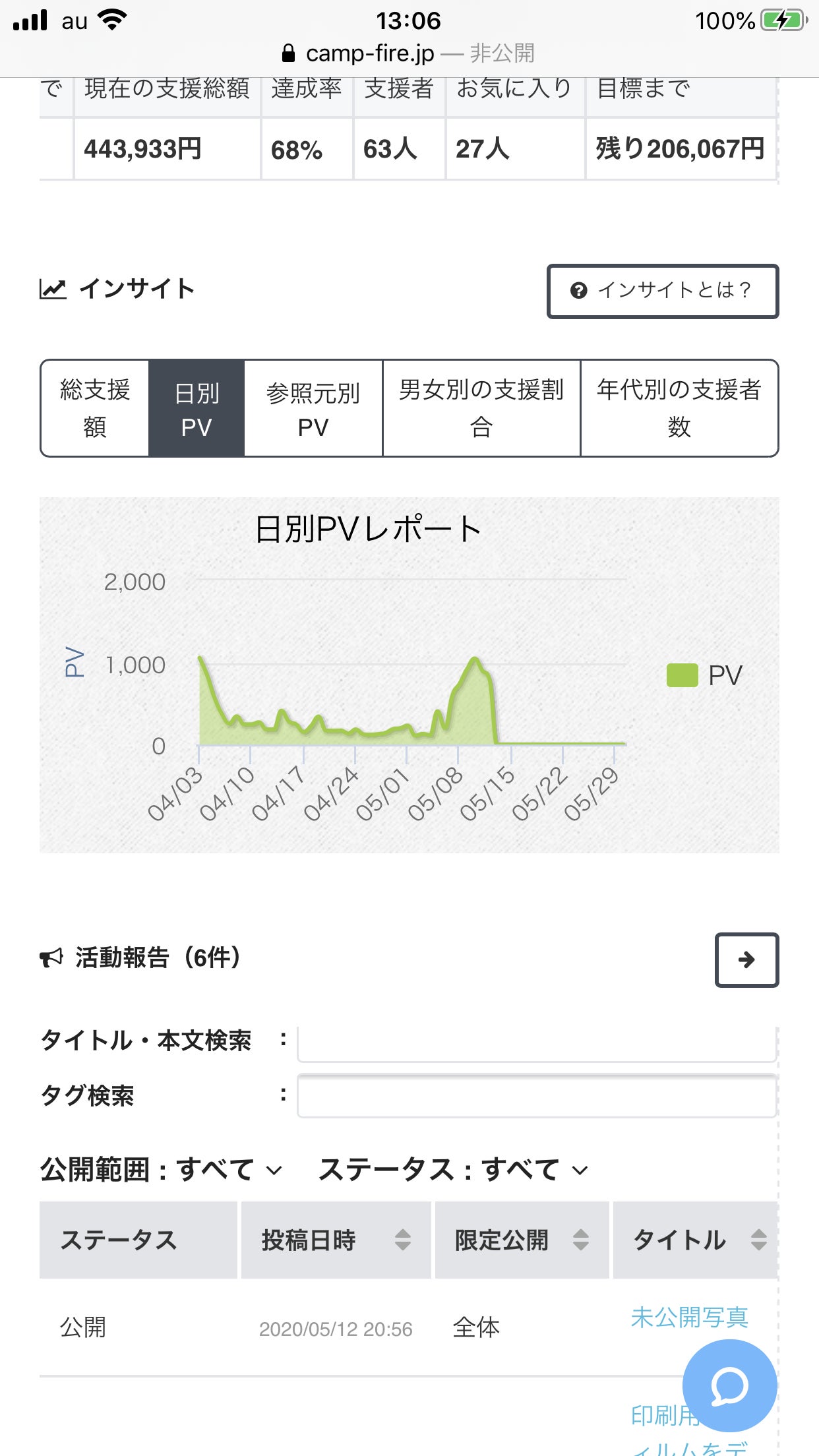 報告#1にある様に、支援者の方からメッセージ頂きまして、行動を改めてからというもの、アクセス数が徐々に伸びていたのがグラフで分かります。