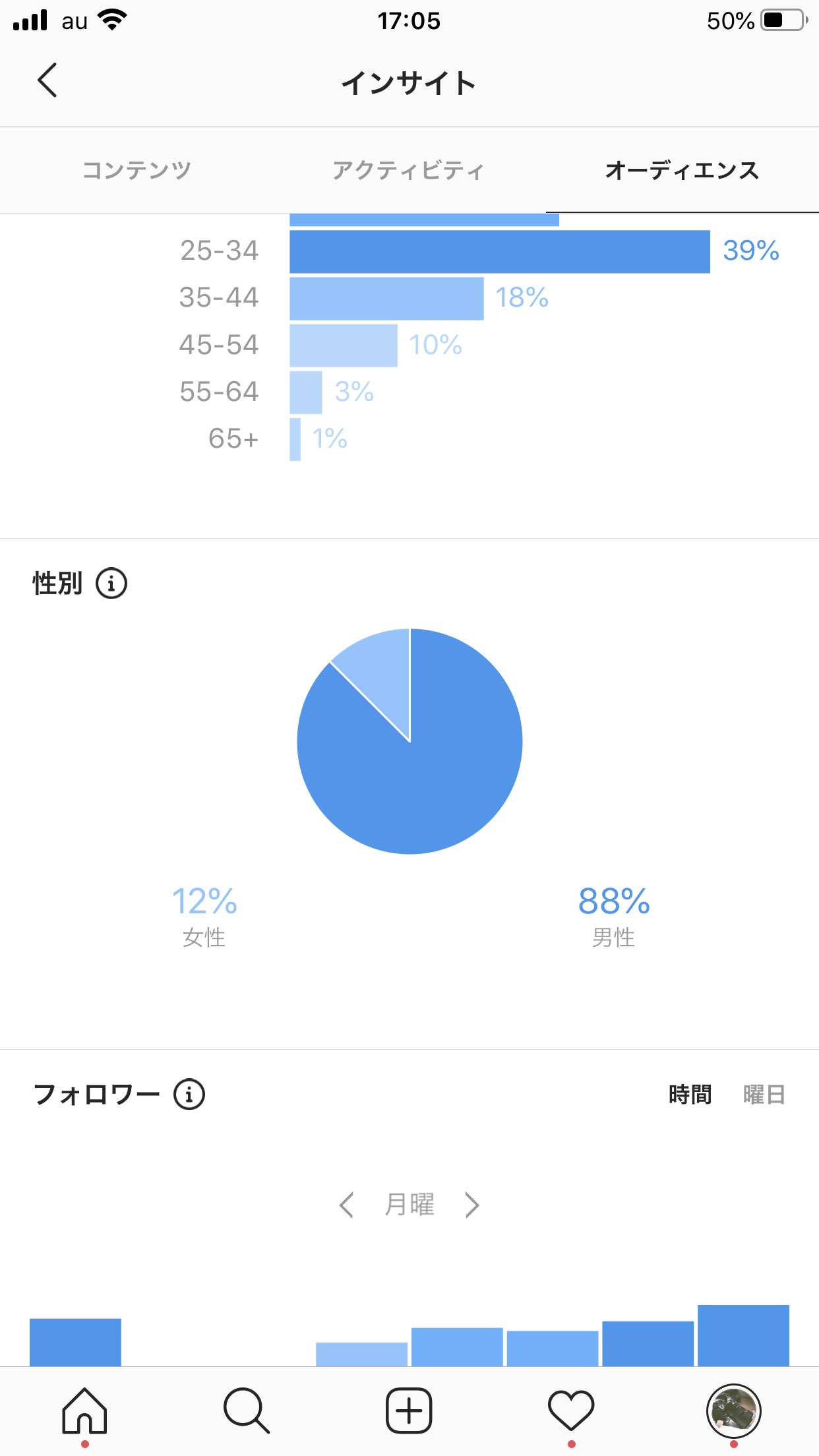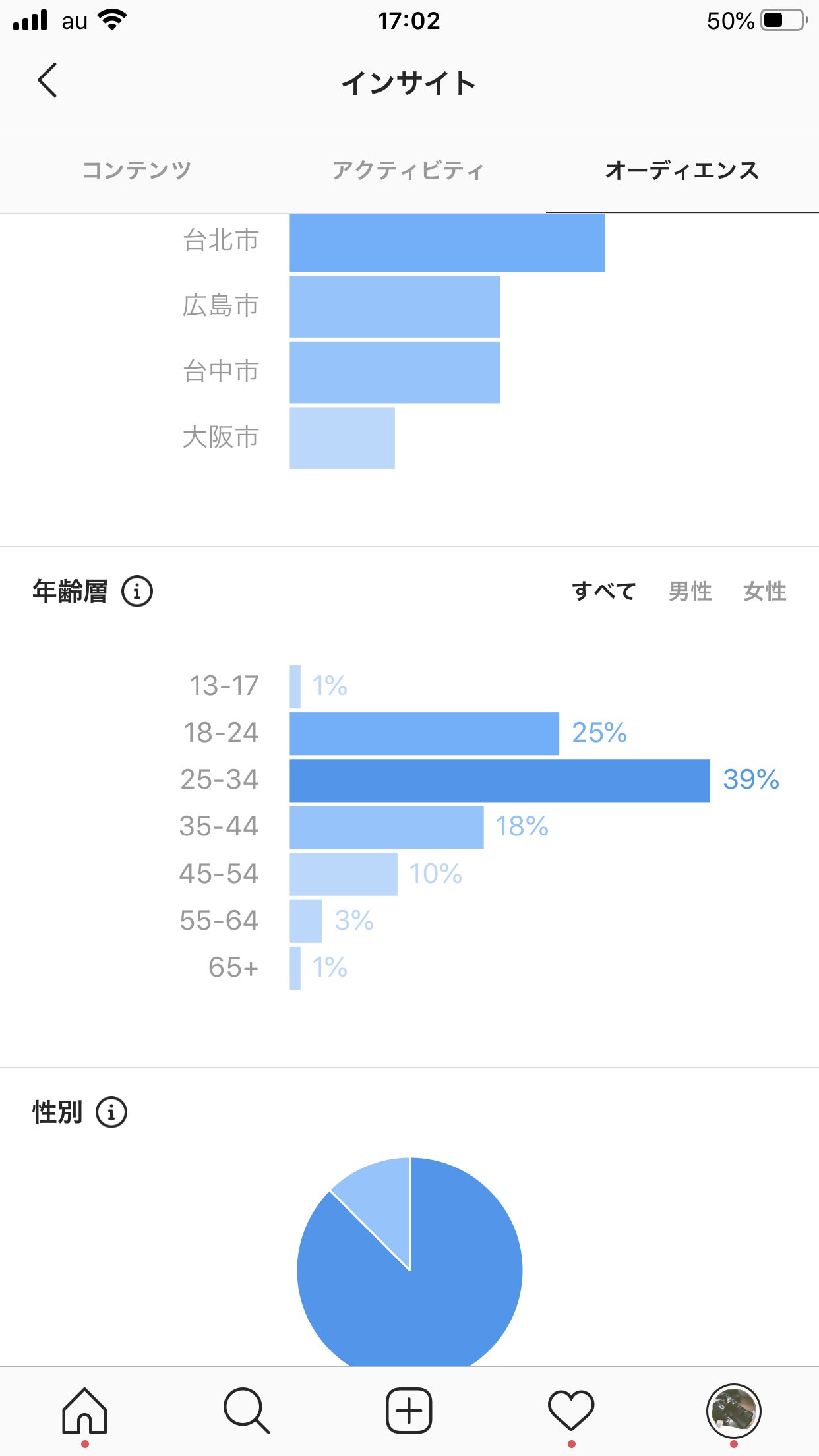 そして、性別分布です。こちらもほぼほぼインスタグラムと一致しています。