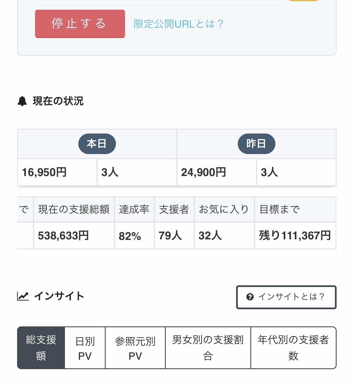 クラウドファンディングページへのアクセスも高い水準を維持出来ていて嬉しいです。