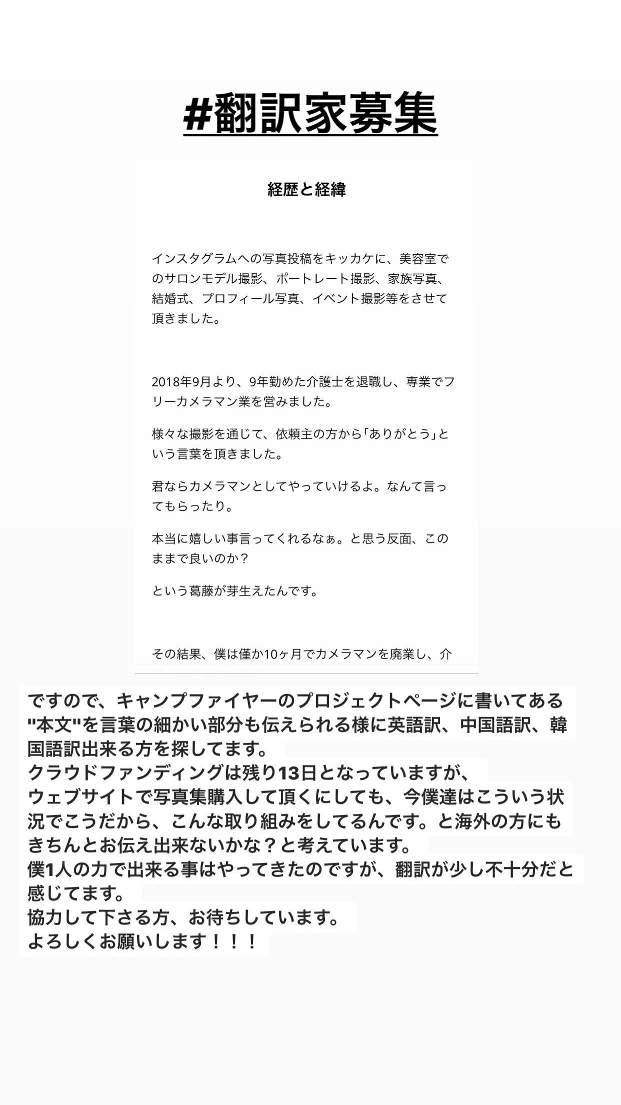 そこで、昨日インスタグラムのストーリーズを使用して、クラウドファンディングの本文を英語、韓国語、中国語に翻訳出来る方を探してます。と投稿したところ