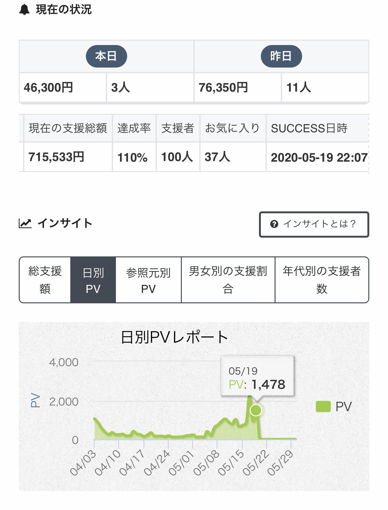 正直、最終日まで達成は難しいだろうな。と思いながら日々告知をしていたので驚きました。