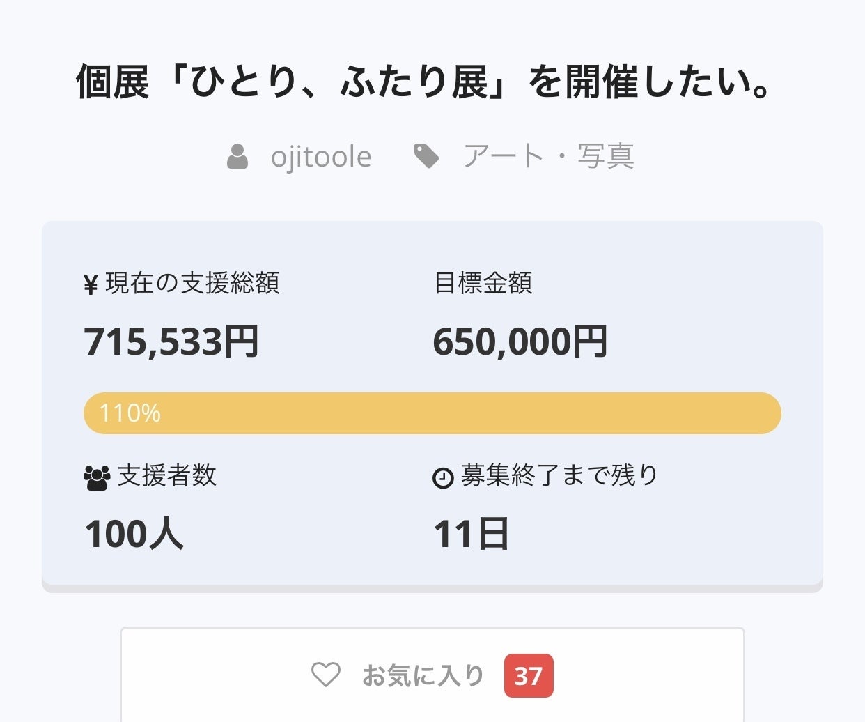 昨日は10名を超える支援が集まり、11日を残して達成する事が出来ました。