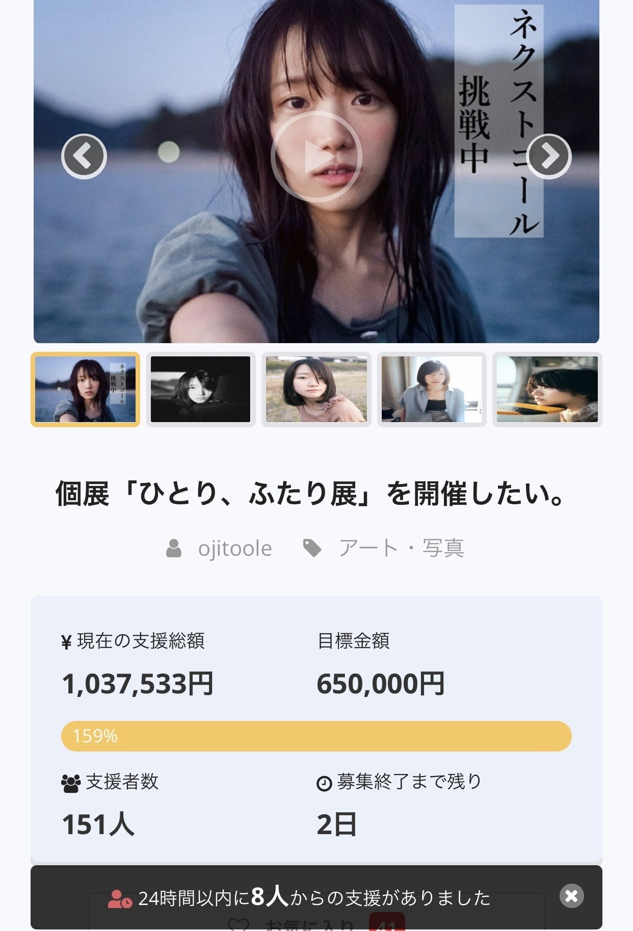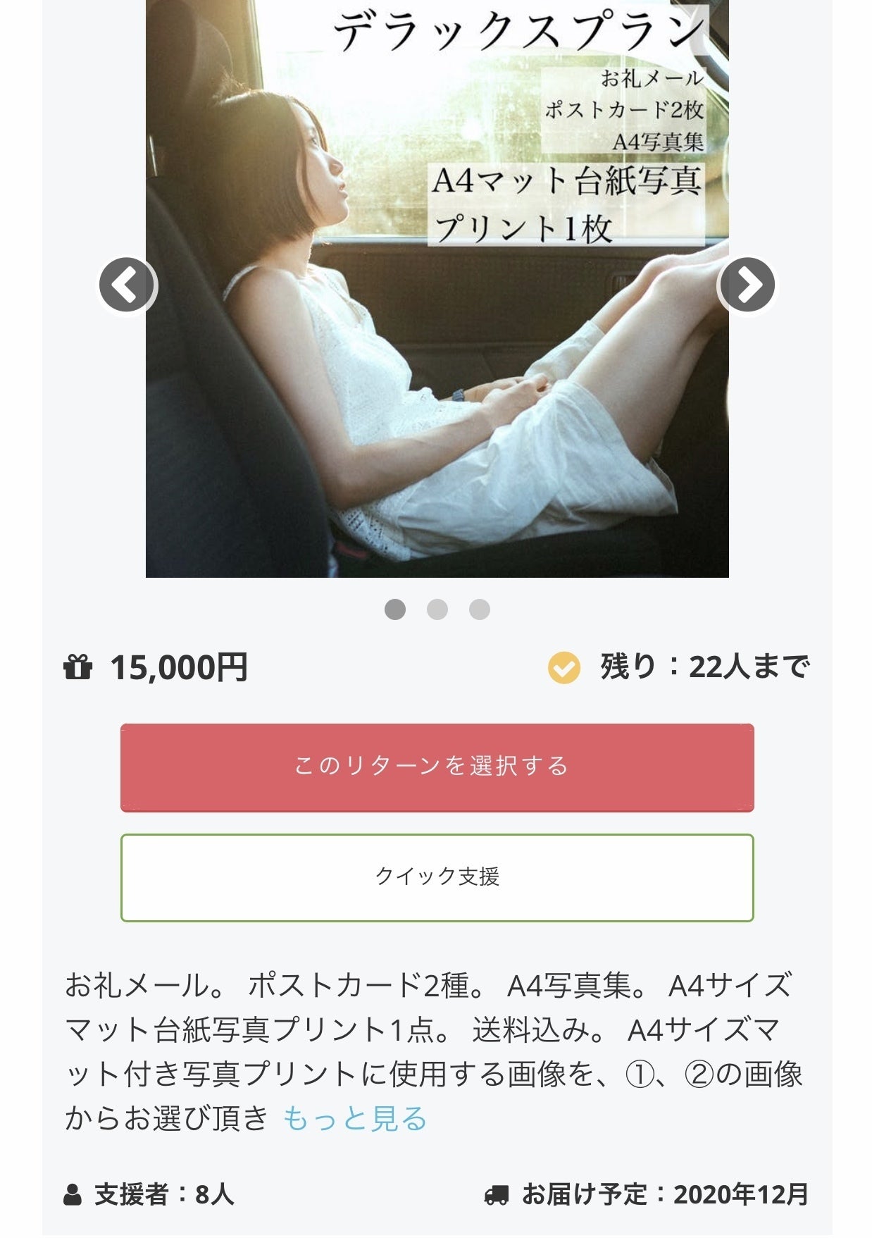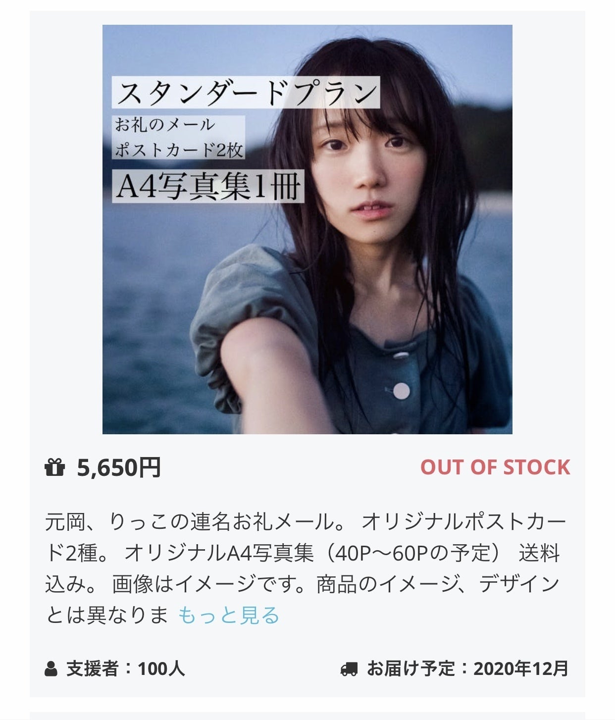 写真集の支援者も無事に100人になりました。問い合わせた結果、未決済が数件あったので97人の支援でout of stockになったんだそうです。