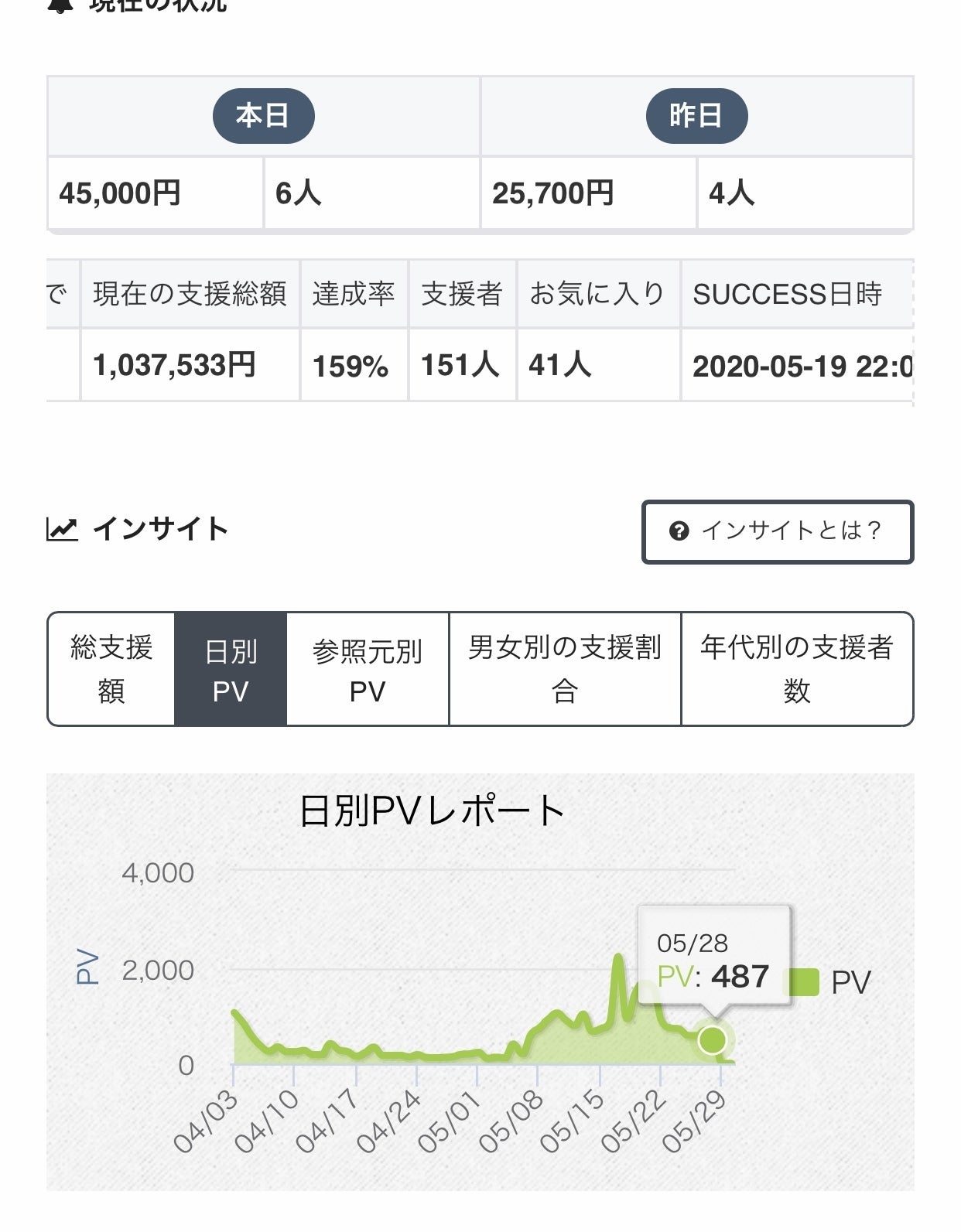 本日で1,037,533円、151人の方からのご支援頂けました!本当にありがとうございます。