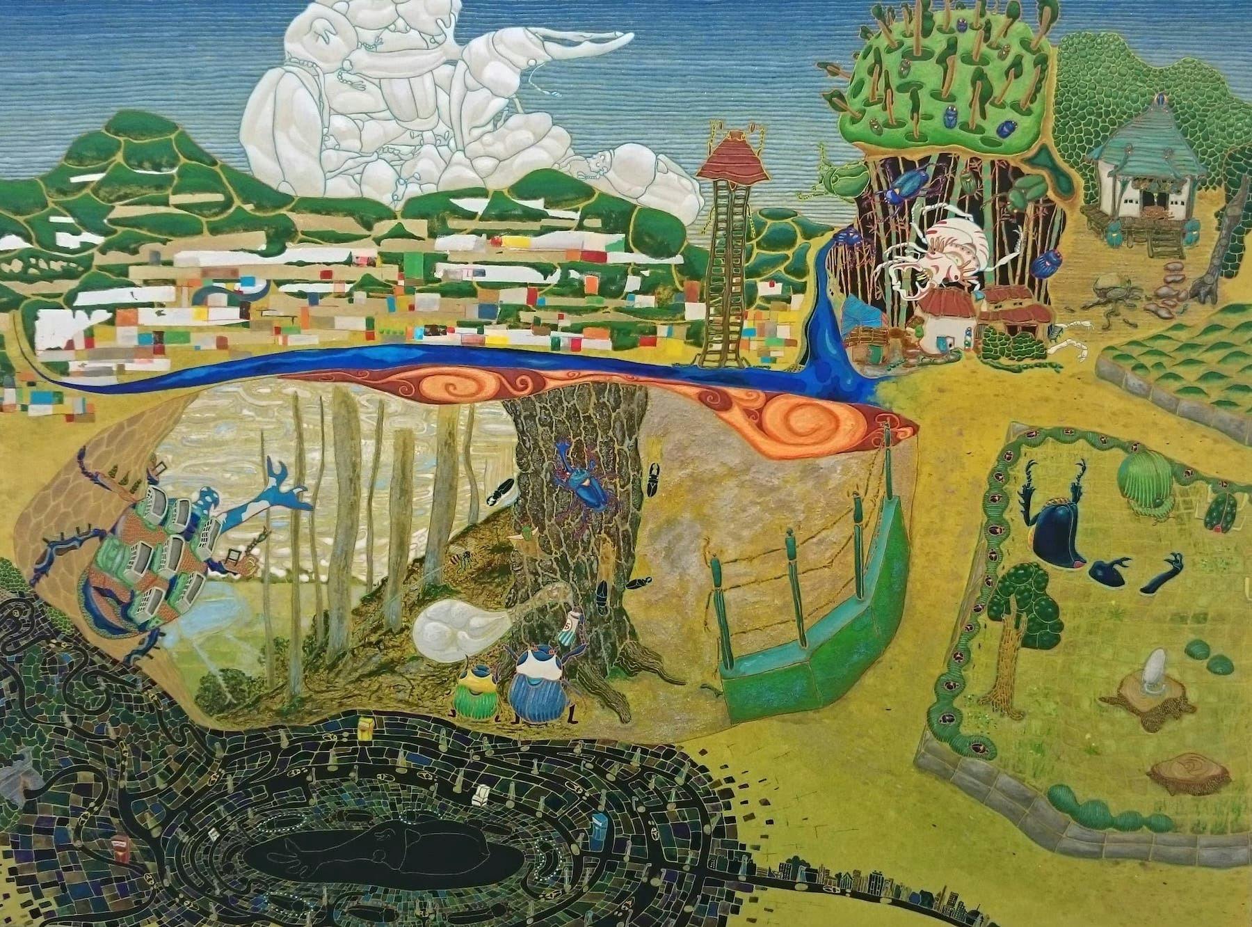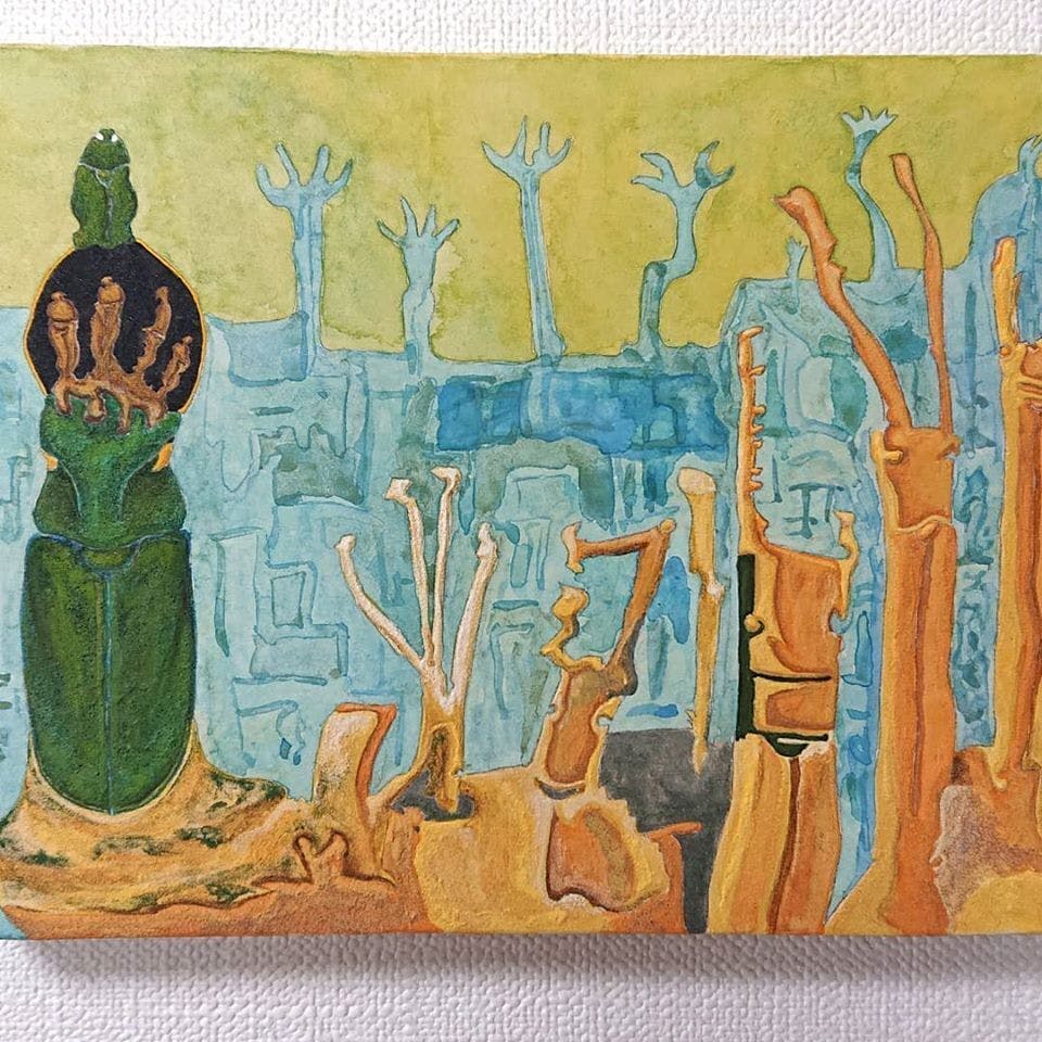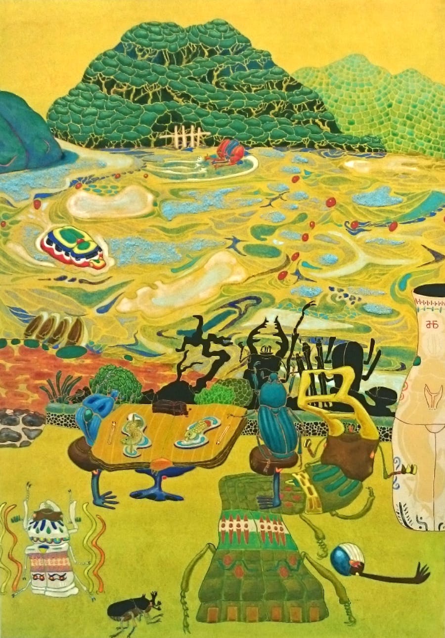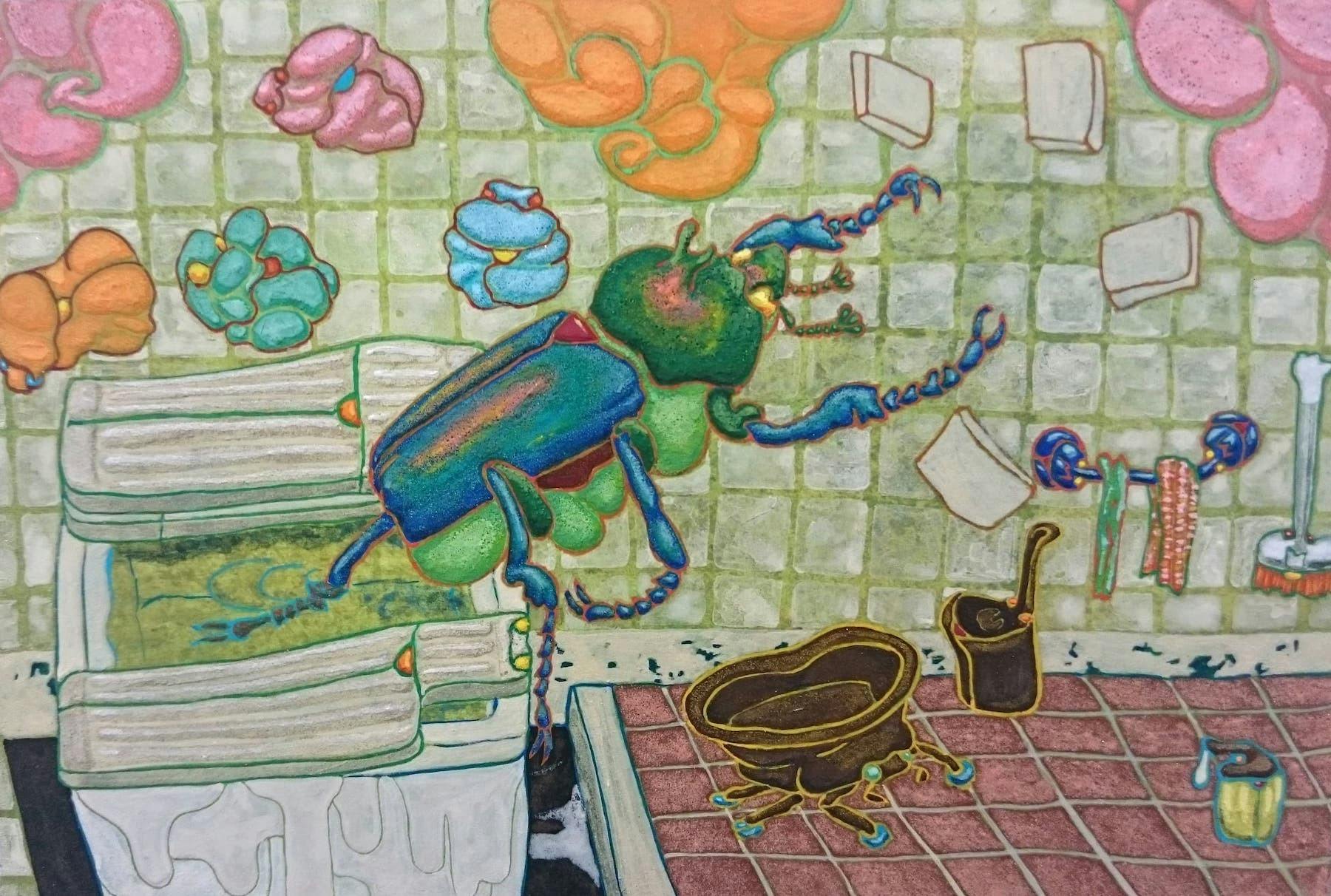 夏をテーマに甲虫たちの姿を借りて、日常の心にのこる物事を日本画で描いています。