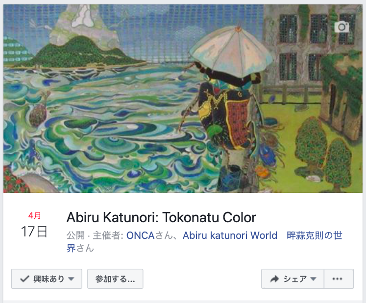 今回のクラウドファンディングでご支援下さった皆様、このプロジェクトを御覧になって下さった皆様、誠にありがとうございます。クラウドファウンディング期間の後半になりました。引き続きご支援、ご声援、情報拡散をどうぞ宜しくお願いします!個展を開催するイギリスBrightonにあるONCA gallery公式Facebookのイベントページも立ち上がりました!Abiru Katunori: Tokonatu Colorすでに「興味あり」とページに反応していただいている方もいます。個展開催前の1ヶ月ほど、現地イギリスBrightonを中心にSNSやONCAギャラリー告知メディアにて積極的な広報協力もしていただけます。今月末にはONCAギャラリースタッフとのネット会議も行うなど、チーム一丸となって個展を盛り上げていく体制づくりも進んでます。★個展を開催するイギリスBrightonにあるONCA gallery公式サイトに畔蒜克則個展「TOKONATU COLOR」の開催告知が掲載されました!★ONCAギャラリー 公式Facebook 「TOKONATU COLOR」イベントページ★畔蒜克則の世界 Facebookページ是非ともフォローしてご覧くださいませ。宜しくお願いします。
