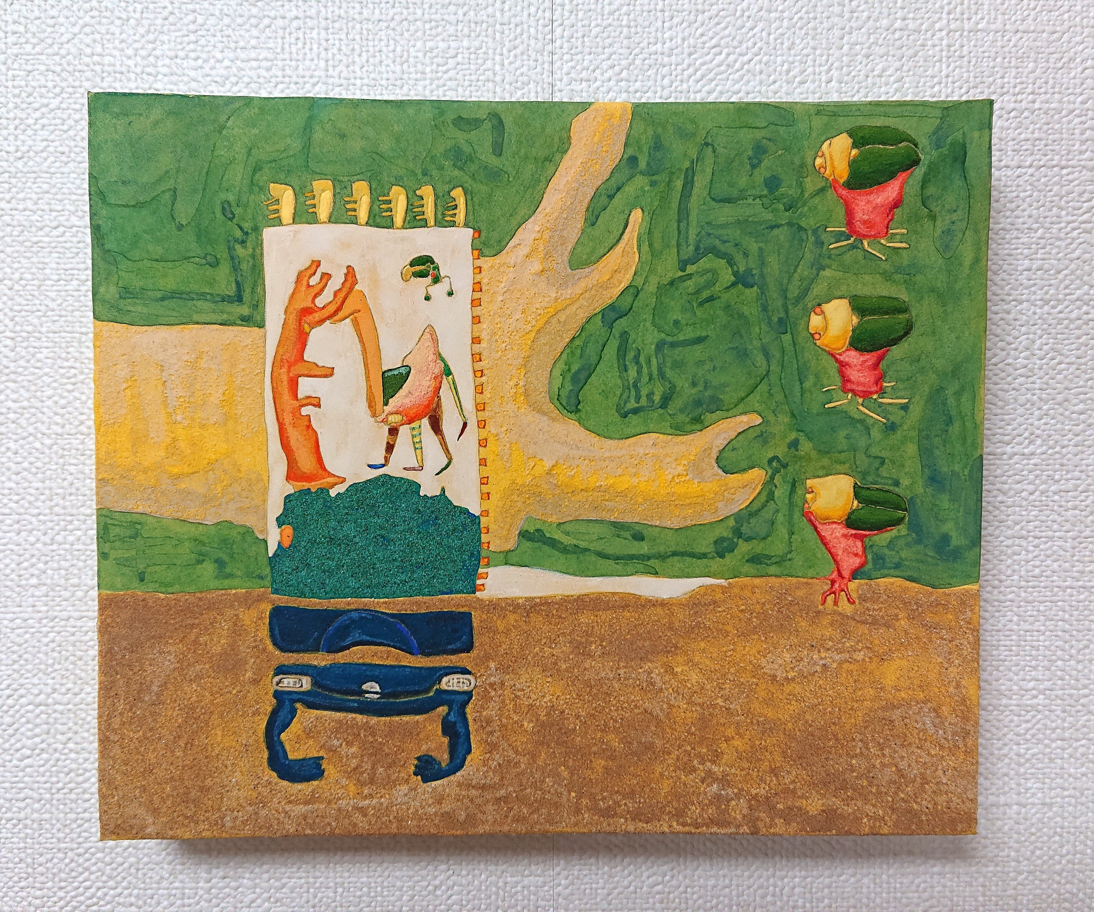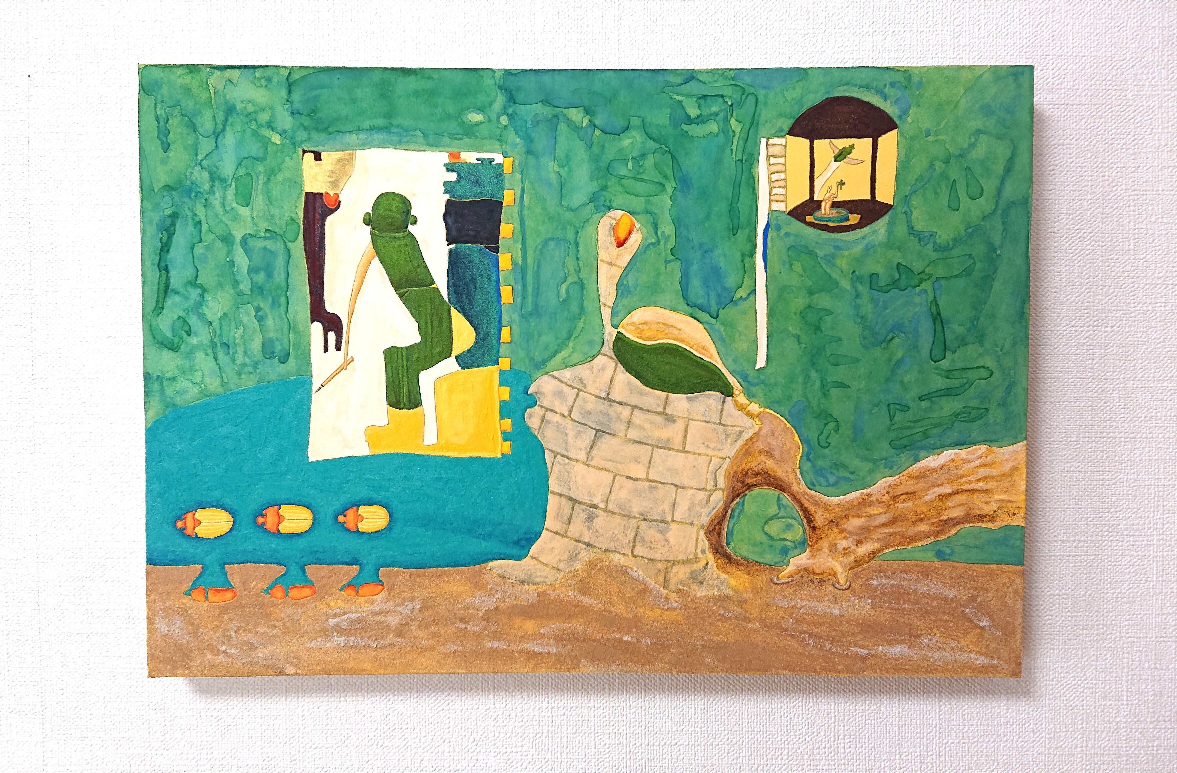 皆様ご支援、ご声援、誠にありがとうございます。活動報告として、イギリスの個展に展示する予定の作品を少しずつご紹介させていただこうと思います。初めにご紹介させていただく作品は、学生時代から10年ほど住んでいた、青梅から出た時に描いた作品です。タイトル 「エクセルはじめ 」サイズ 400mm×280mm制作年 2011年素材 木製パネル、雲肌麻紙、膠、岩絵具、水干絵具