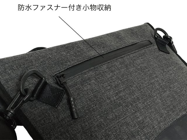 表面の収納ポケットには、中身が雨に濡れないよう防水ファスナーがついています!