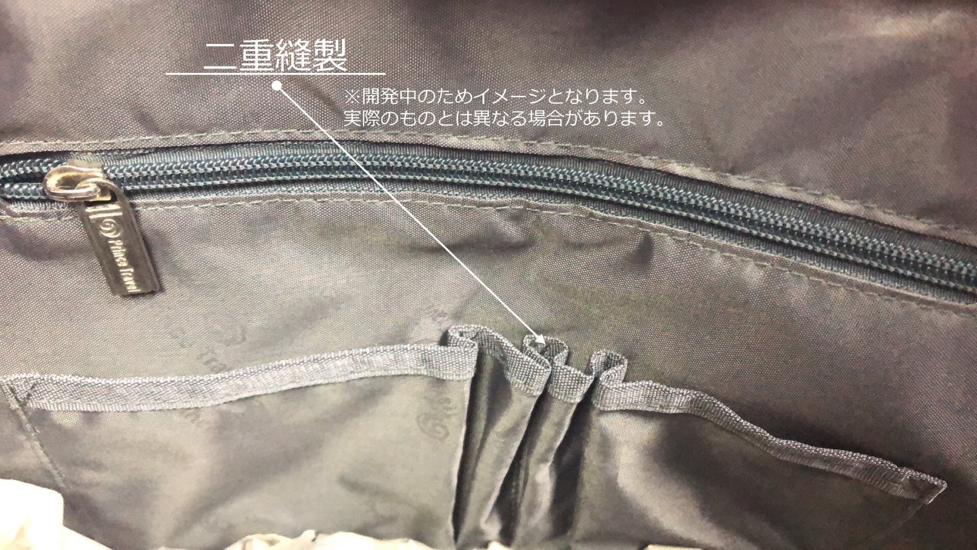 荷物が多い時も肩の疲れを軽減してくれる、クッションタイプの肩パットを付けています。また、裏地はメッシュ素材なので、夏の暑い日でも蒸れにくい設計となっています。