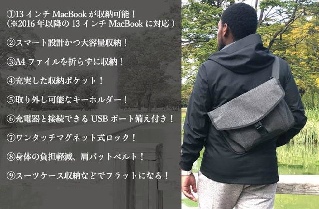 信頼のYKKジッパーの13インチのMacbookが入る(2016年以降モデル)、満員電車もお出かけも手ぶらで!