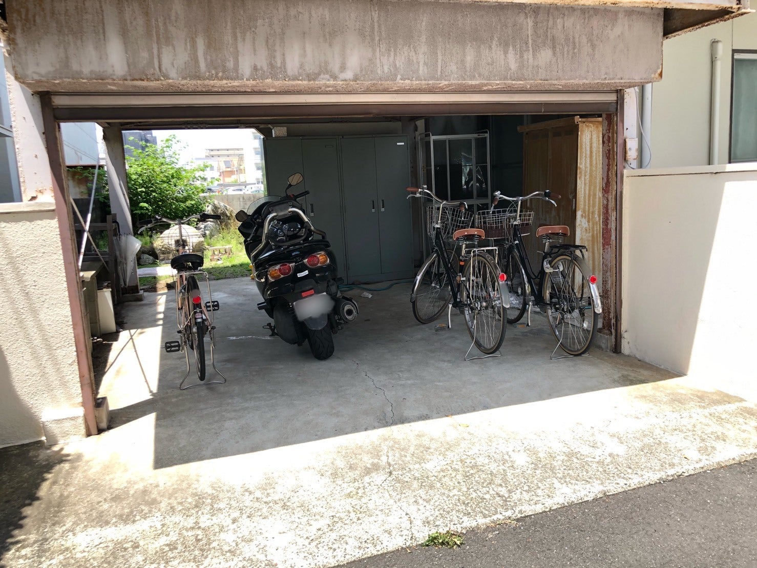 現在の駐車・駐輪スペース。非常に狭く、みんなが止めるスペースが確保できないし、車を止めるところはない。