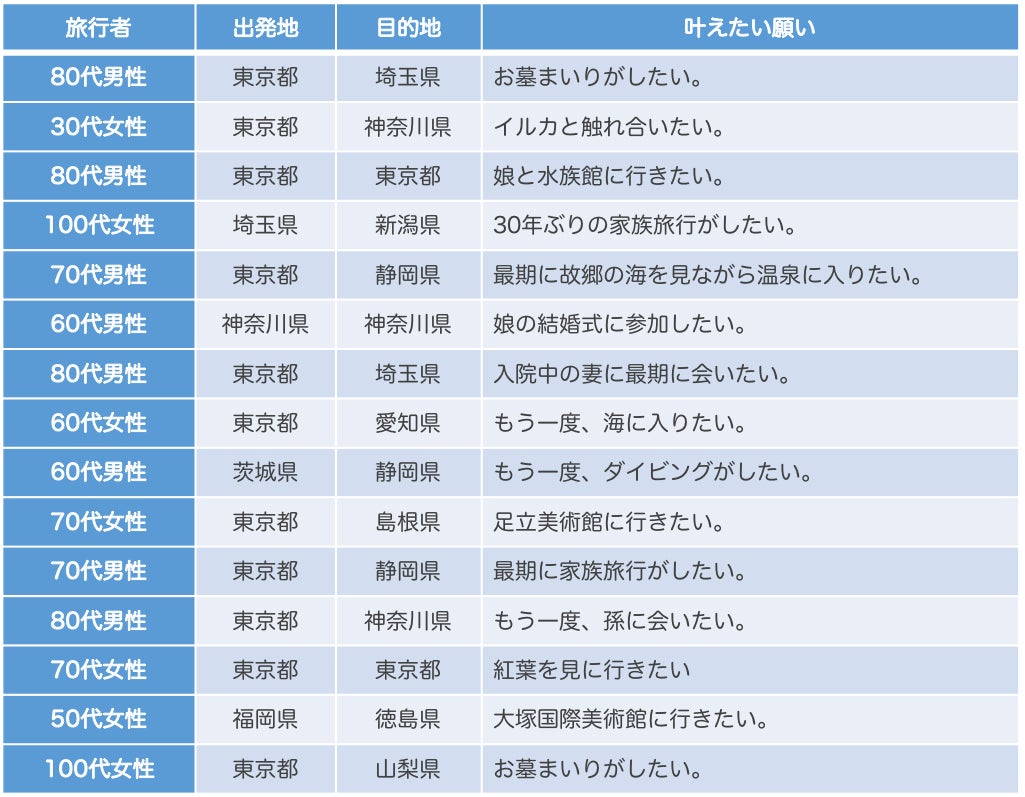 たとえ今の医療では治すことが難しいご病気を抱えている人にとっても、旅行を叶えたいという願いに向かって進み出すことができることにより、「今を生きたい」という力に変えることができたと考えております。