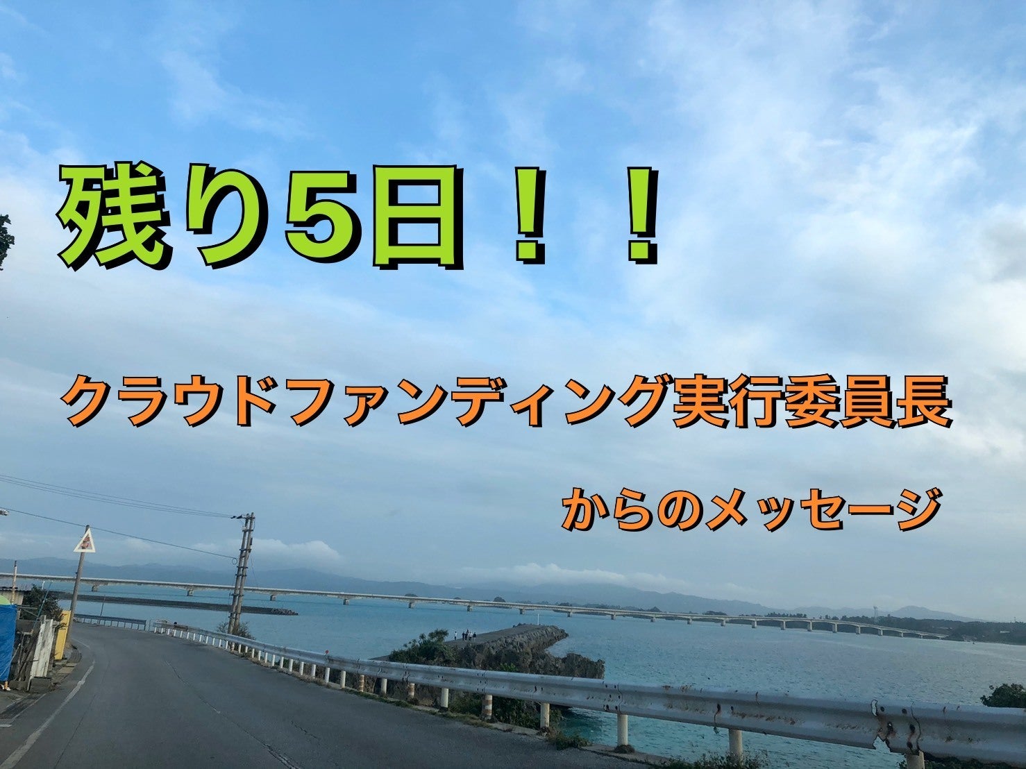 こんにちは!沖縄尚学吹奏楽部です。プロジェクト終了まで残り2日となりました!ここまで応援して下さった皆様、本当にありがとうございます。ですが、目標額を達成するのはとても難しいのが現状です.....そこで!!沖縄尚学では小さい目標を作る事にしました。その小さい目標とは......「目標額の10%を達成する!」です。現在いただいている支援は総額23万5000円です。パトロンの皆様、ご支援いただき誠にありがとうございます!小さい目標である10%とは25万円なので、達成まであと1万5000円です!最後の最後に皆様のお力をお借りできないでしょうか?私たちもラストスパート最後まで頑張ります!現在、生徒からの活動報告が毎日18時に更新されますので、そちらも是非ご覧ください!これからも沖縄尚学吹奏楽部の応援を宜しくお願い致します。沖縄尚学吹奏楽部