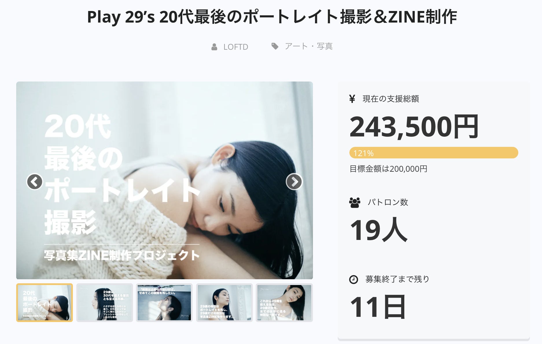 また、29歳のポートレイト撮影も一度完売し、再度リターンの追加を