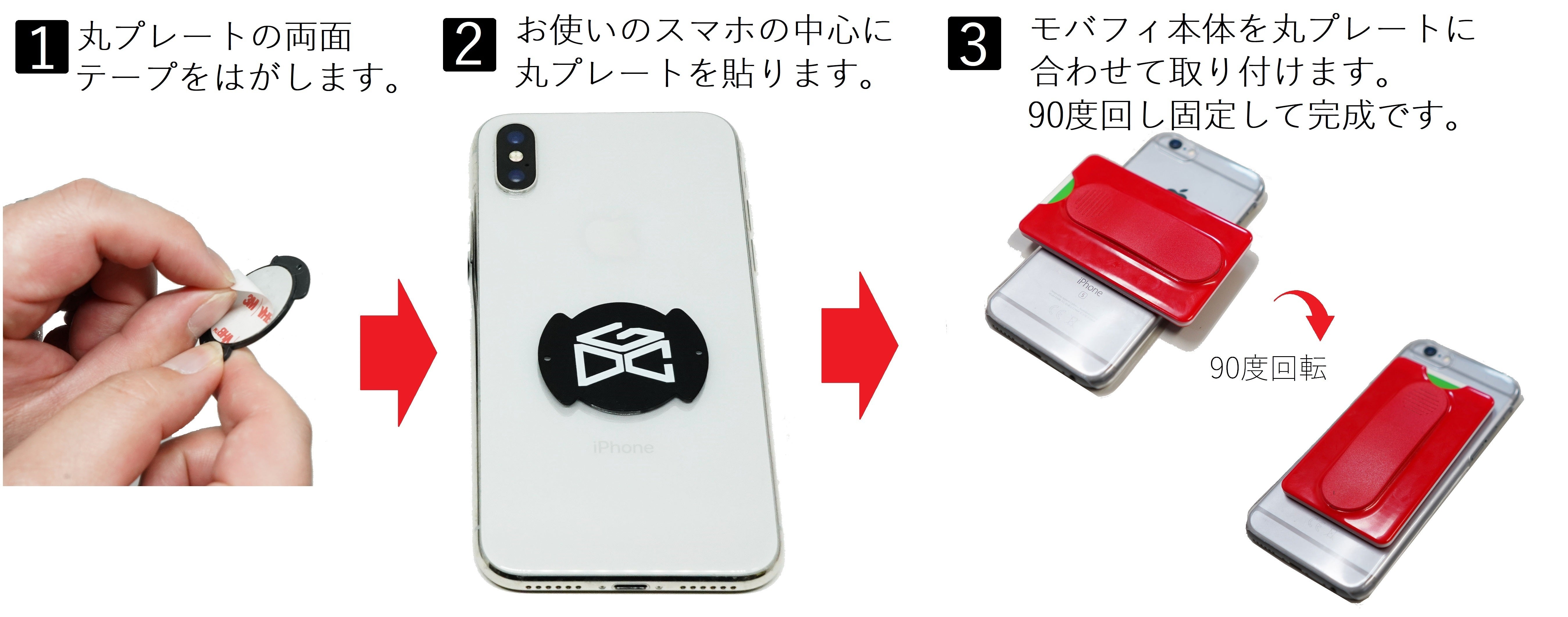 1.丸プレートをスマホ本体に貼り付けます。