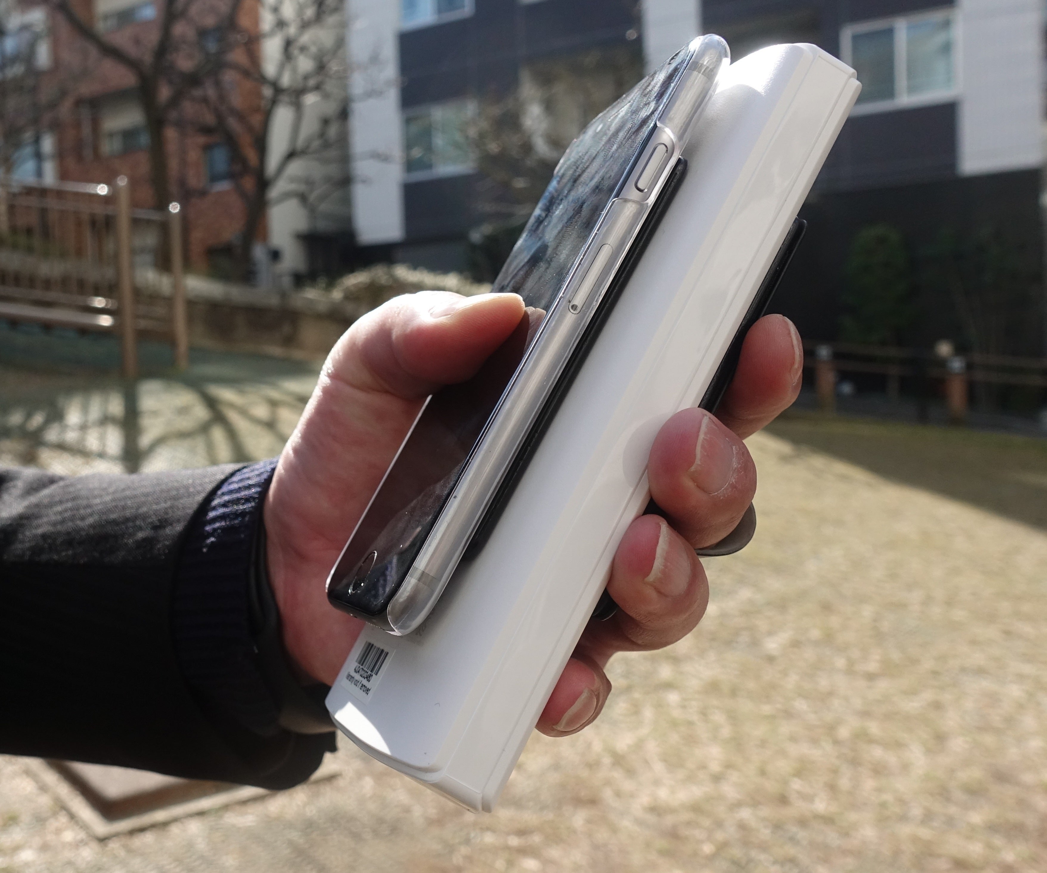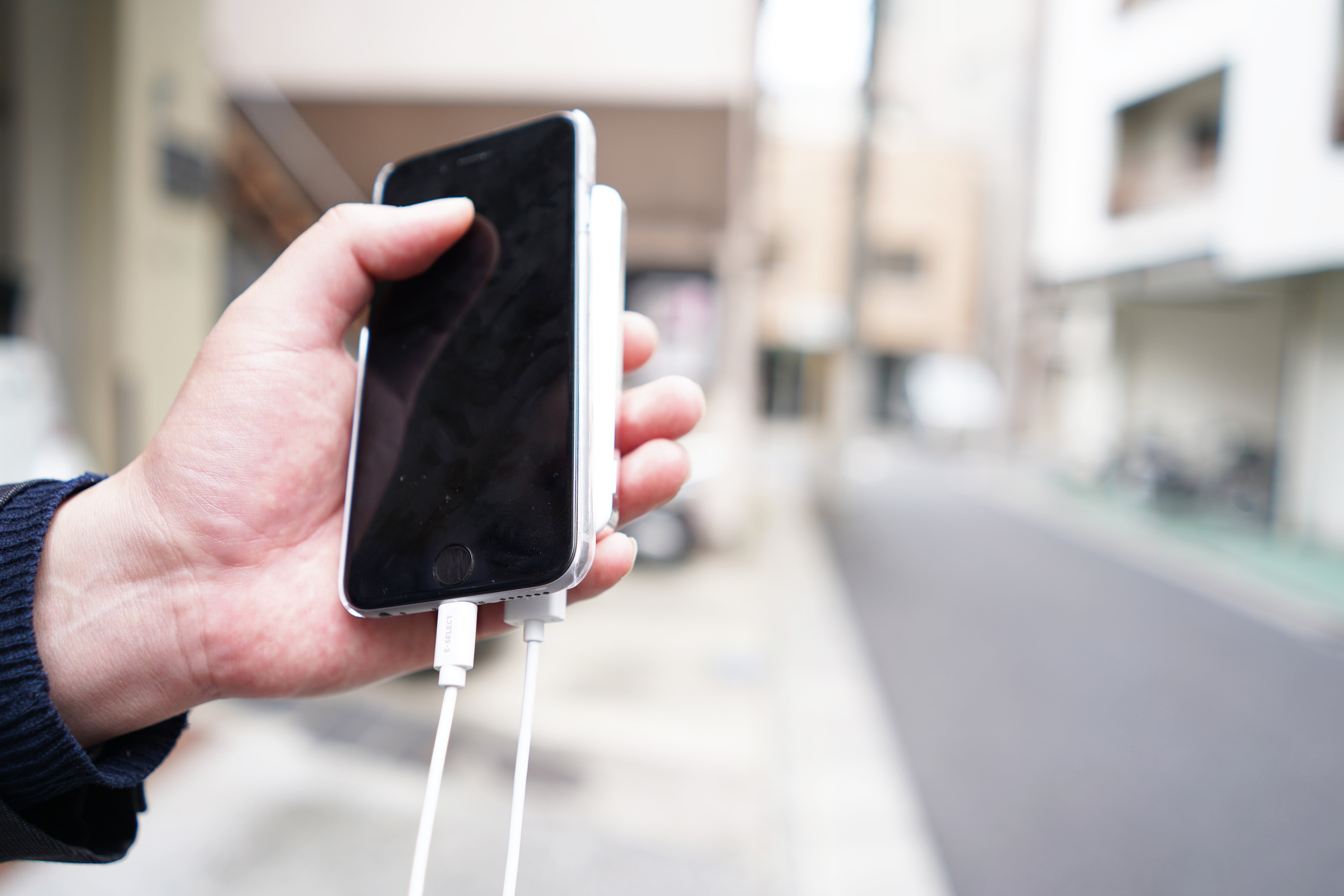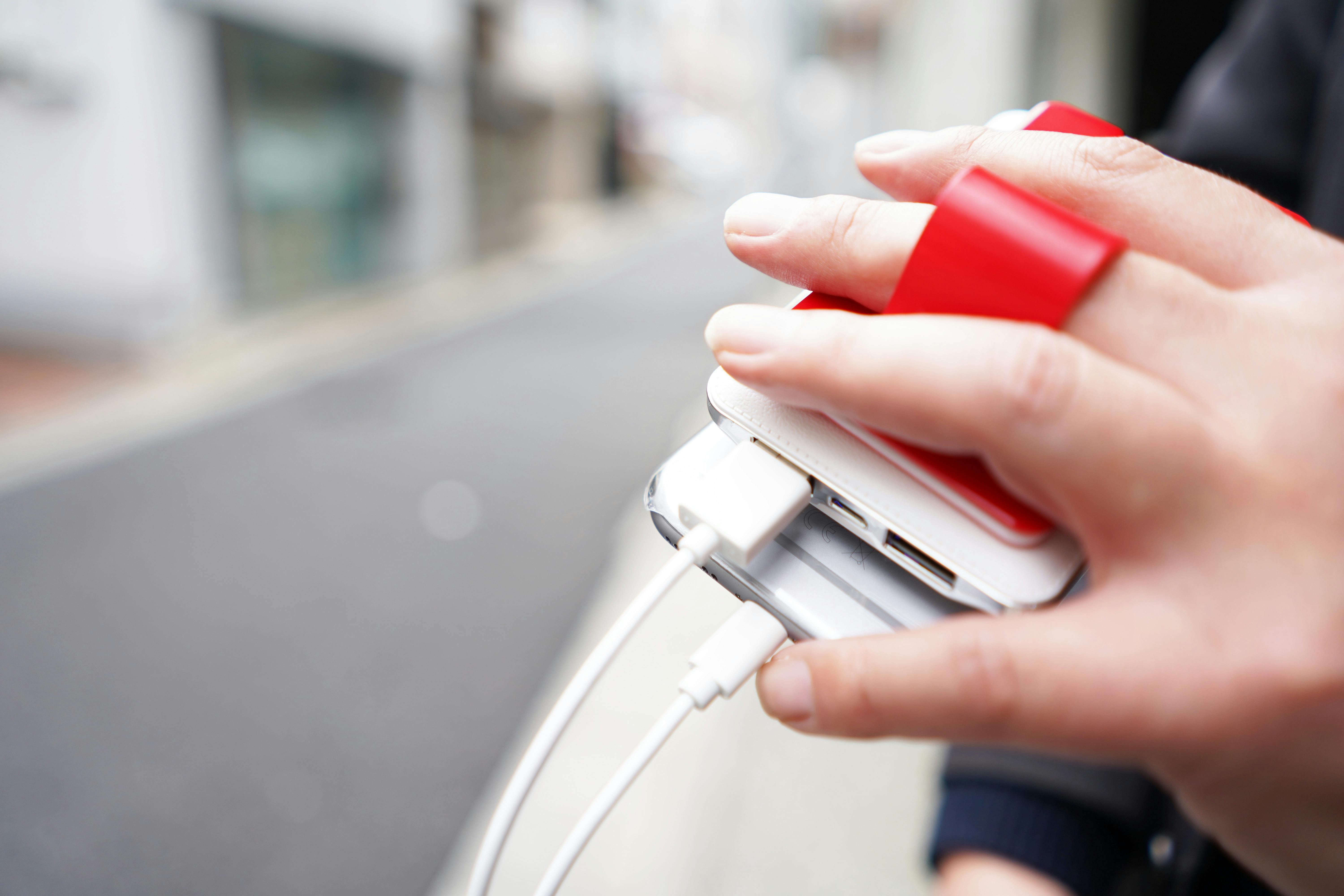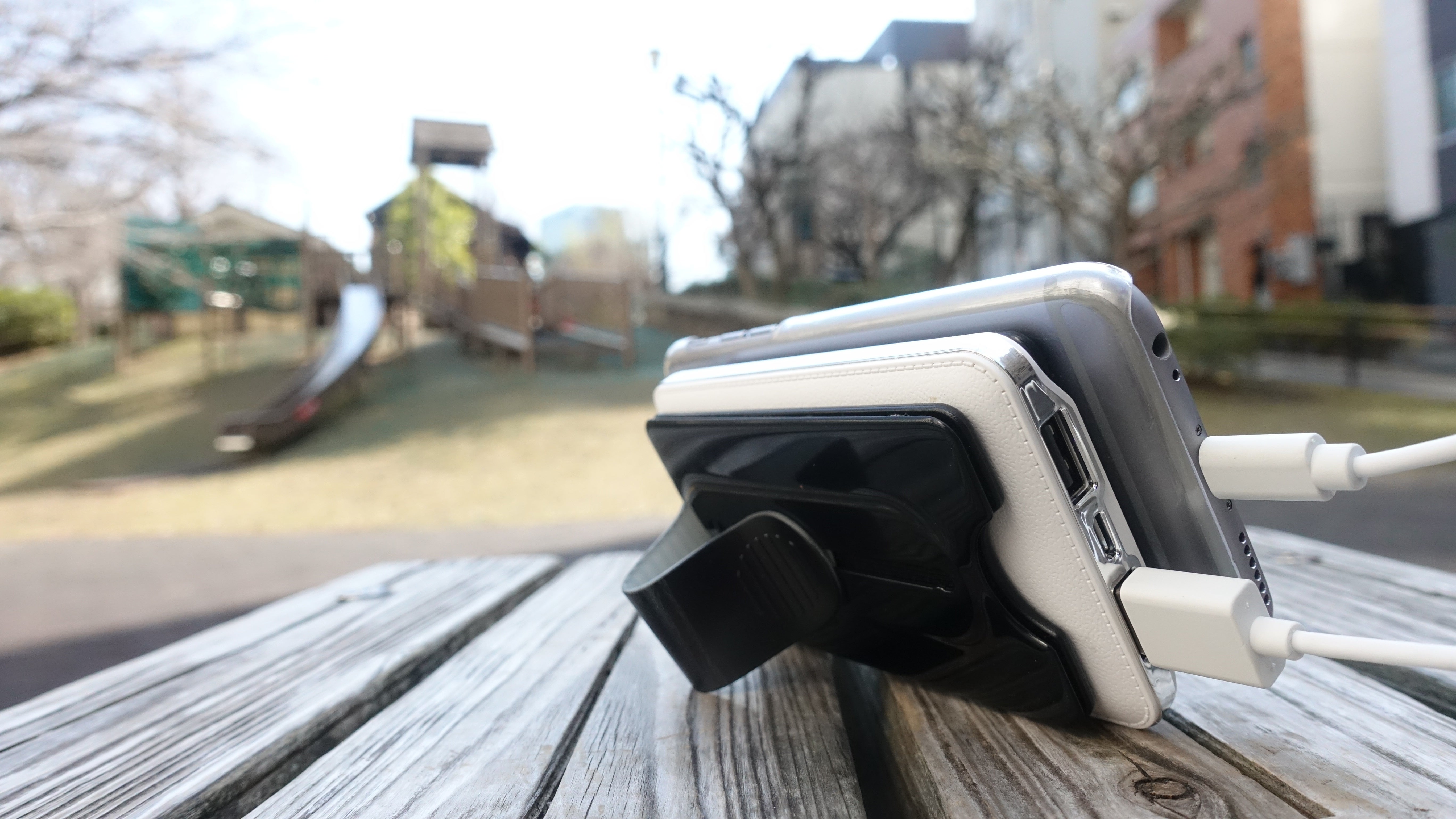 スマホとバッテリーを片手で持てて手軽に充電可能!
