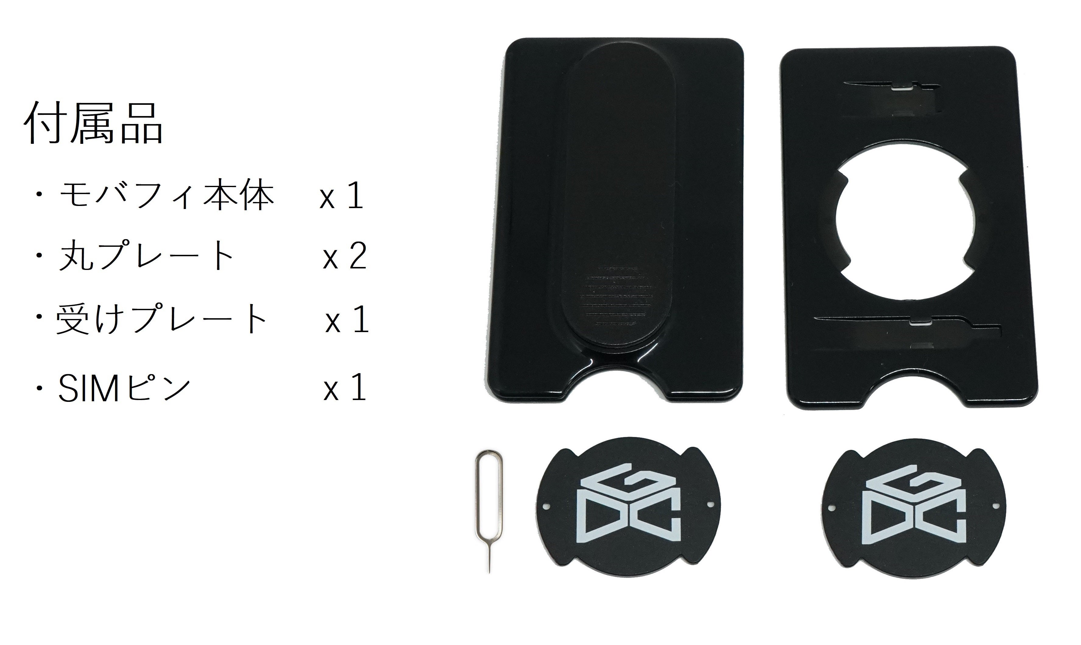 ・モバフィ本体x1 ・丸プレートx2 ・受けプレートx1