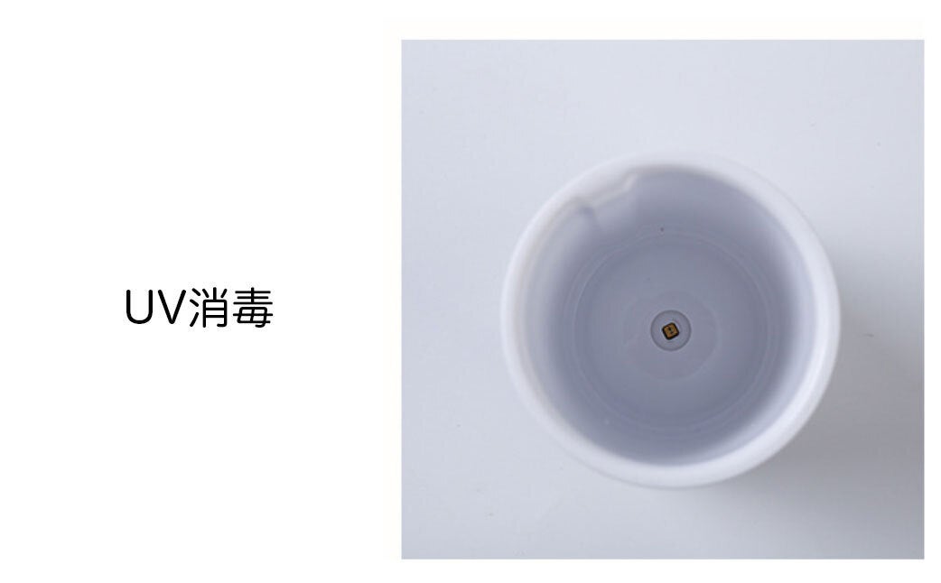 1.99%除菌機能付きコップになります。毎日の歯磨き後、歯ブラシをそのままコップの中にいれ、ボタン一つ押すだけで、コップや歯ブラシを両方除菌できる製品になります。