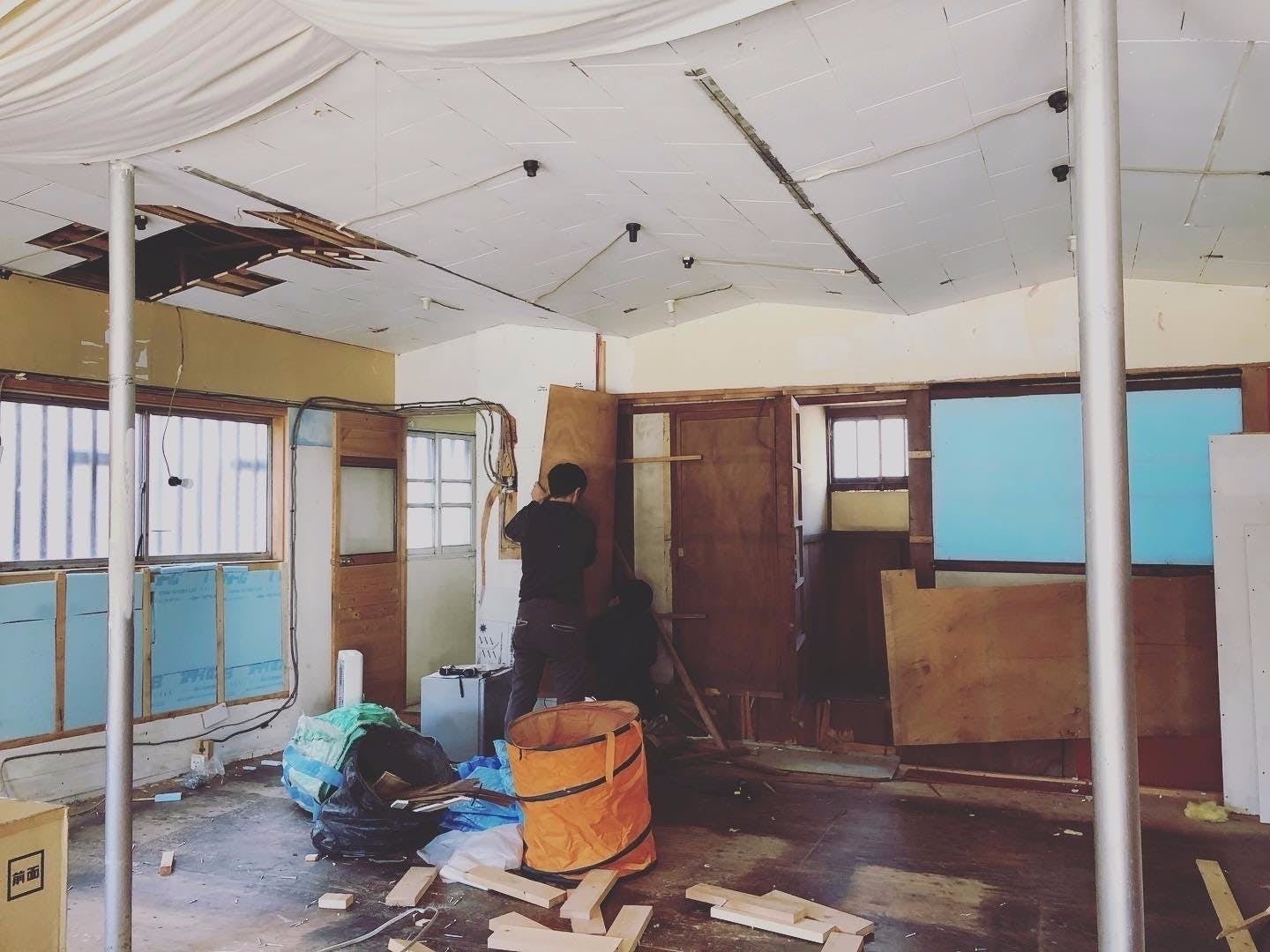 現在、新たな空間にすべく自分たちの手で解体作業を進めています。