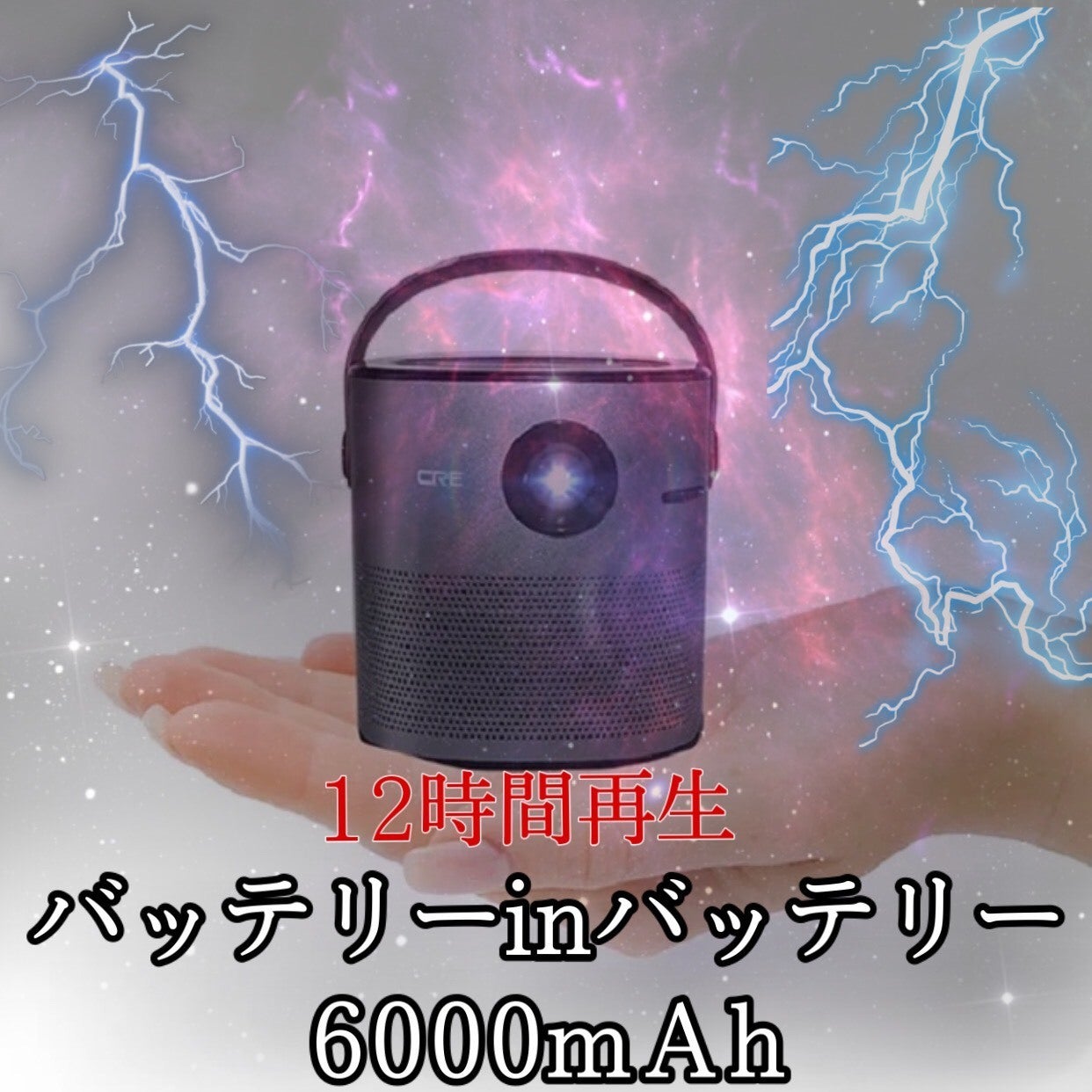 小型プロジェクターとしては珍しい6000mAhのバッテリーを本体に内蔵しています。