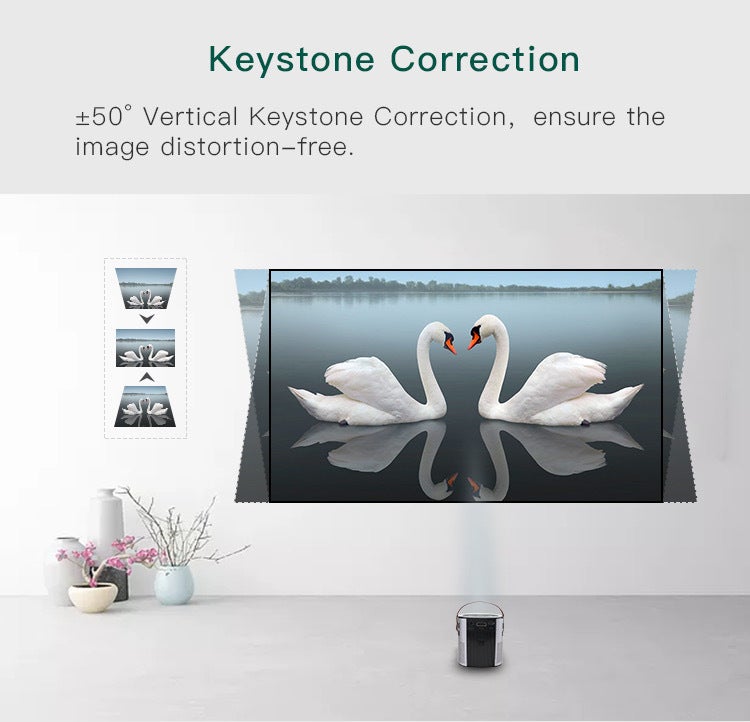 プロジェクターを卓上に置く等、中心からずれた位置に設置すると台形の歪みが生じることがあります。自動台形補正機能はこの歪みを±50°まで補正し、四角形の画面に修正することが可能です。