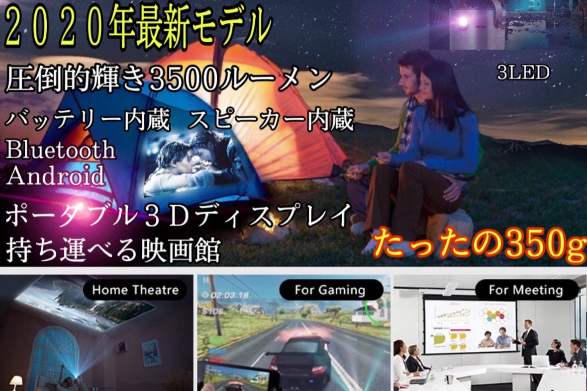 映し出される画像や動画は非常に綺麗で、臨場感も非常にあります。キャンプ場のような場所でも、ゲームや映画を一層楽しめます。