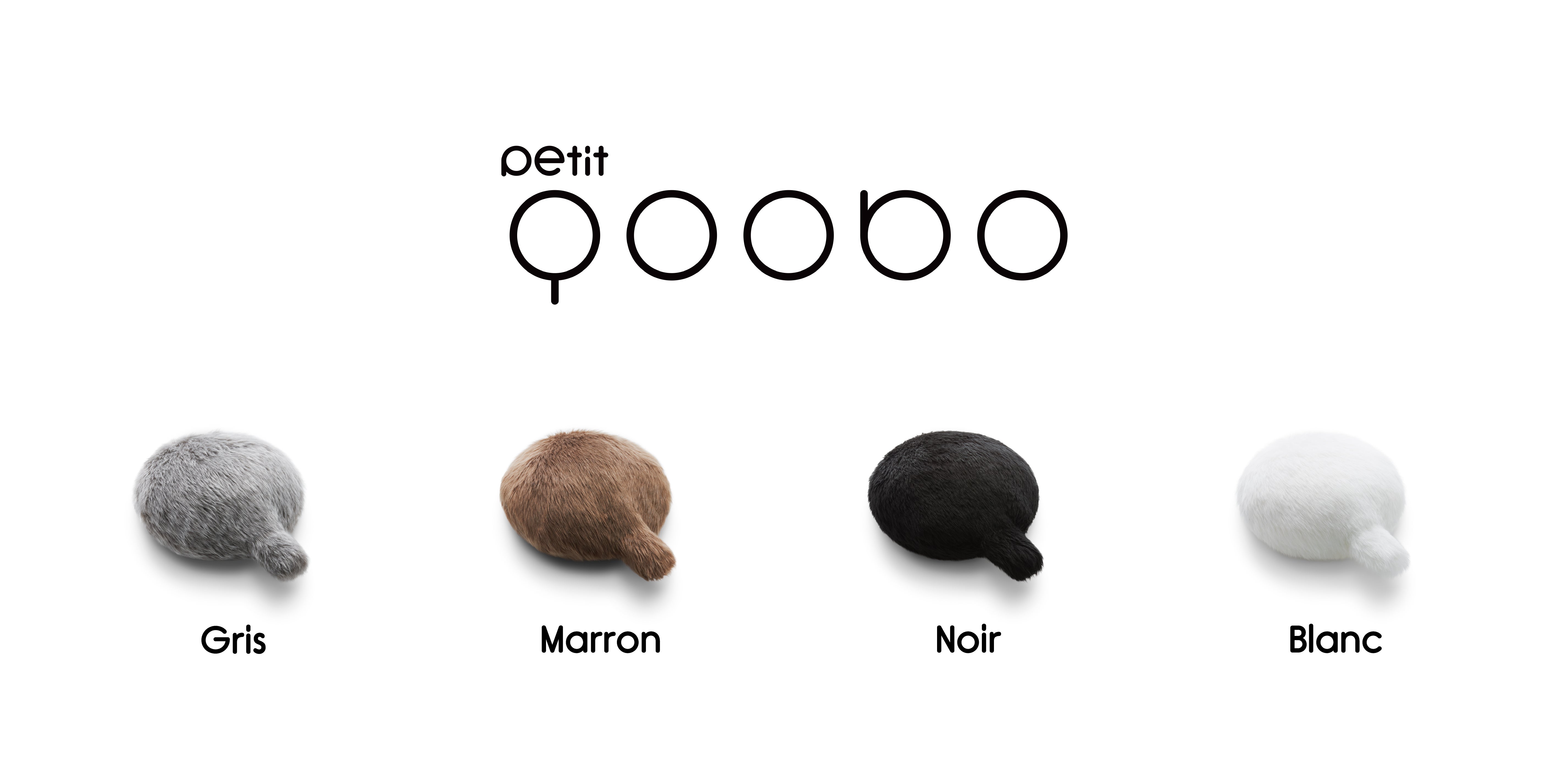 Petit Qooboは、「グリ」(灰)、「マロン」(茶)、「ノワール」(黒)、「ブラン」(白)の4色です。小さな4色のしっぽたちを、どうぞよろしくお願いします。
