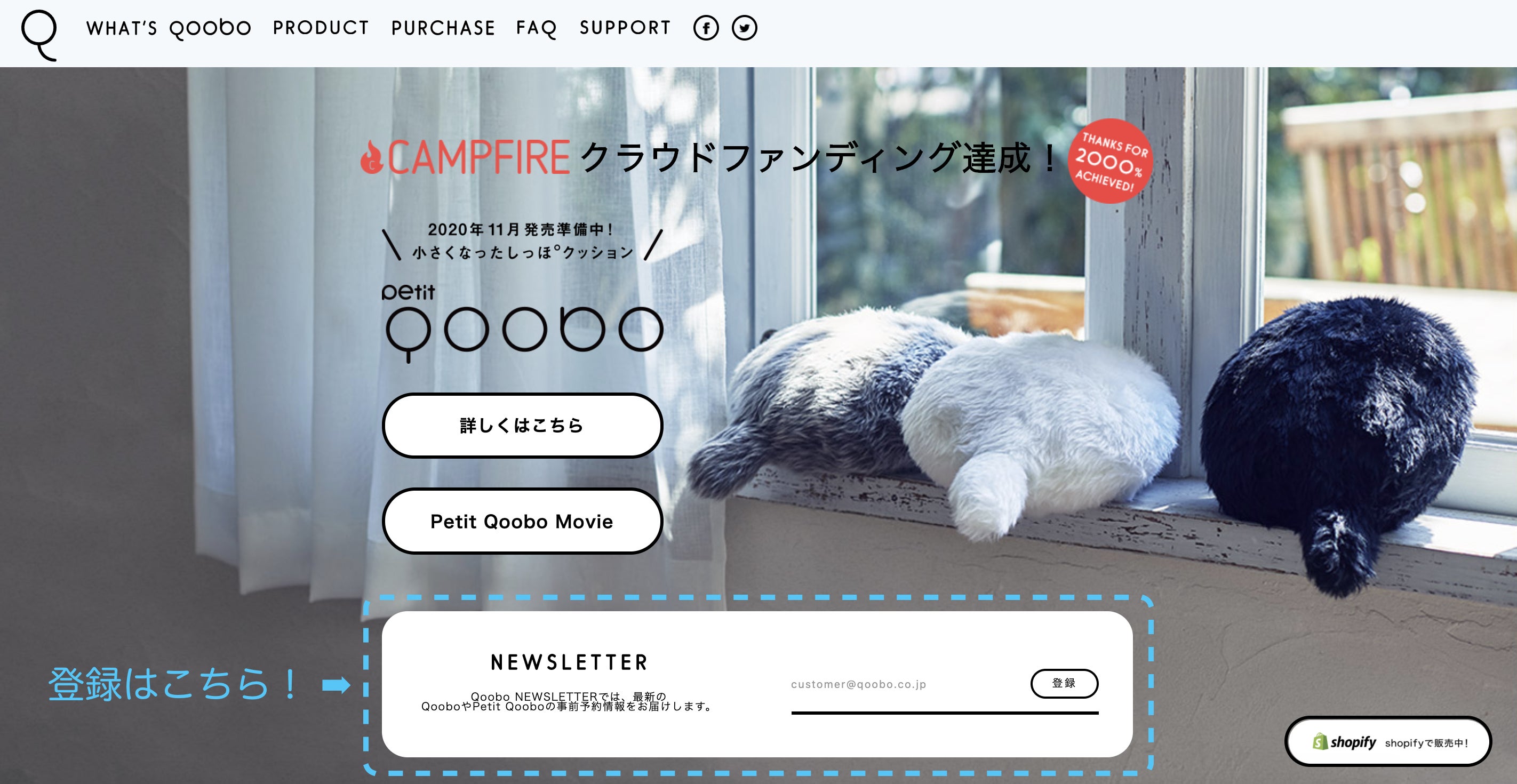 ご登録は、Qoobo公式Webサイトにございます登録フォームから行えます。