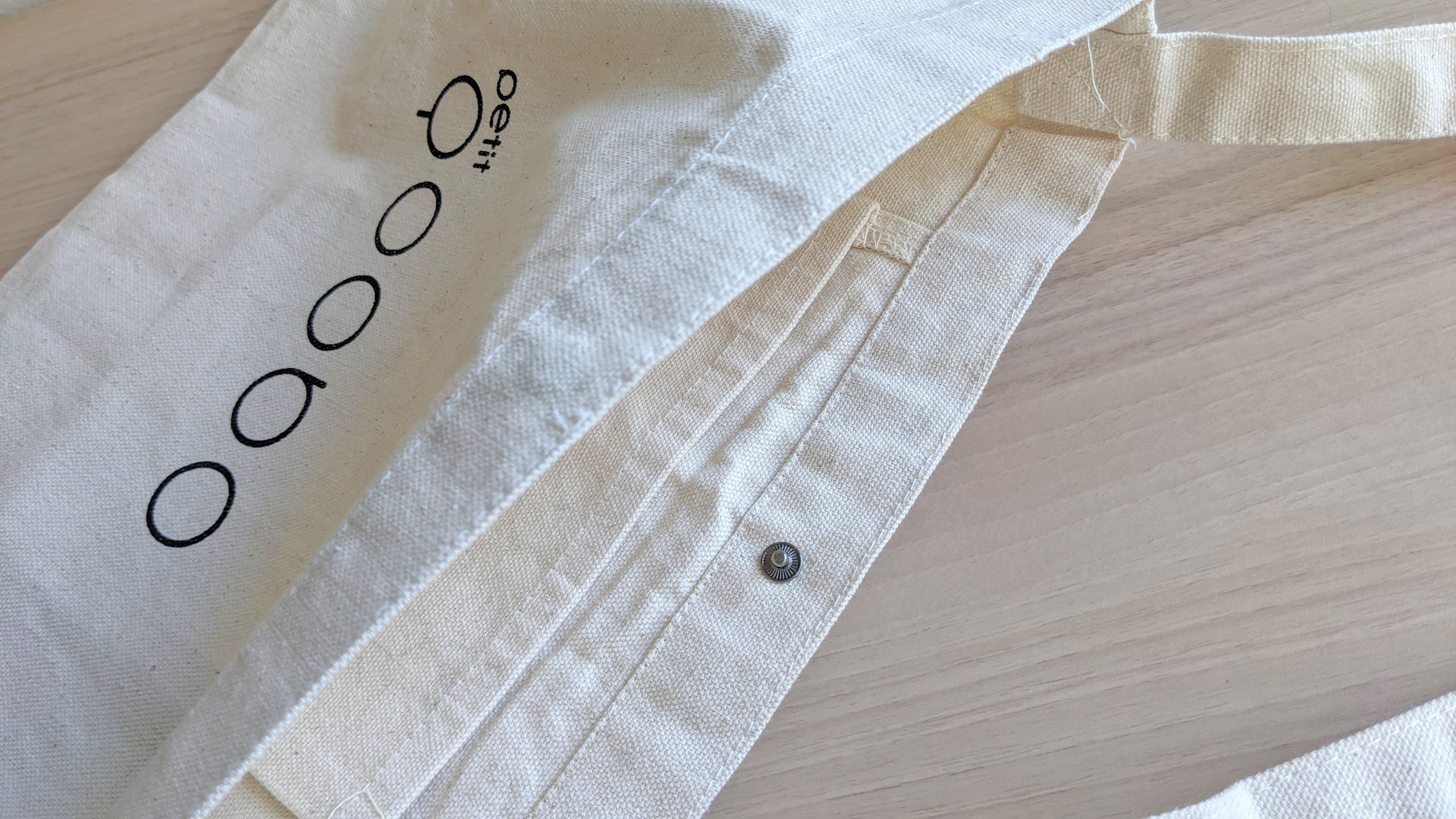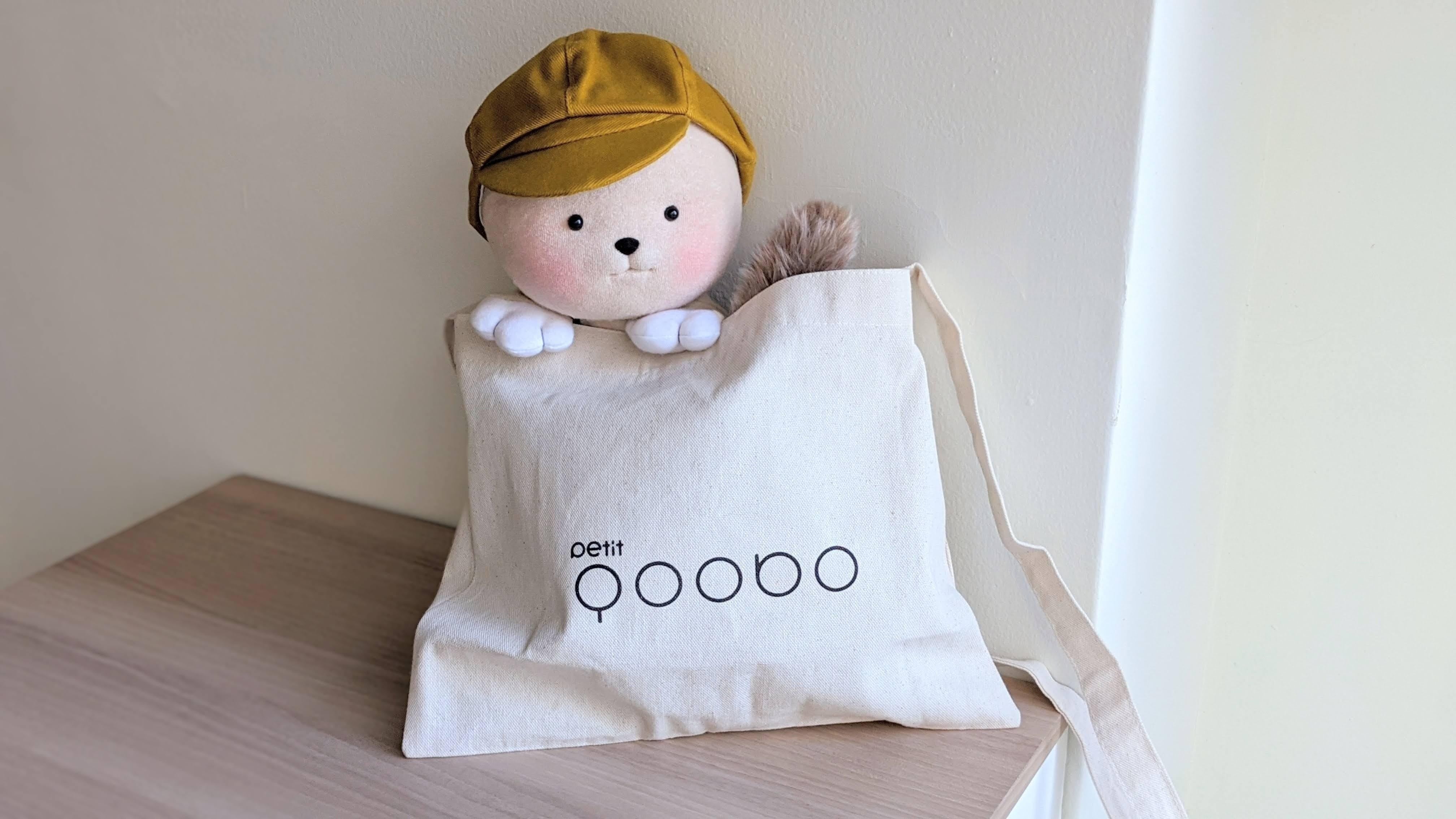 ナチュラルな生地にPetit Qooboのロゴをプリントした、